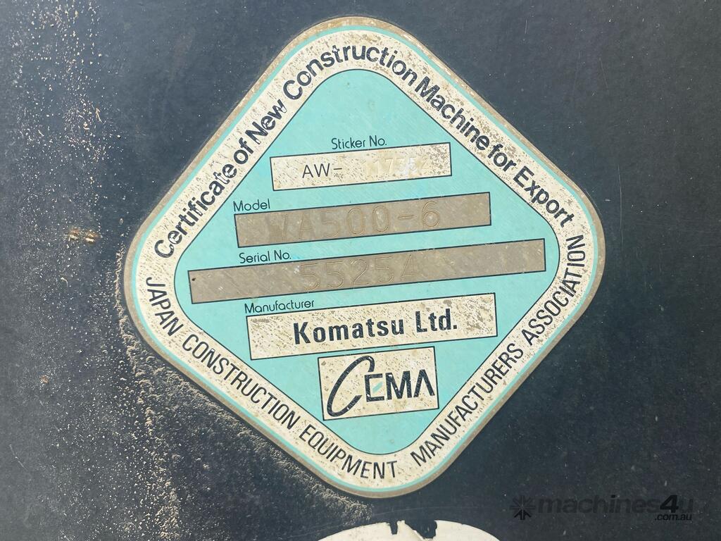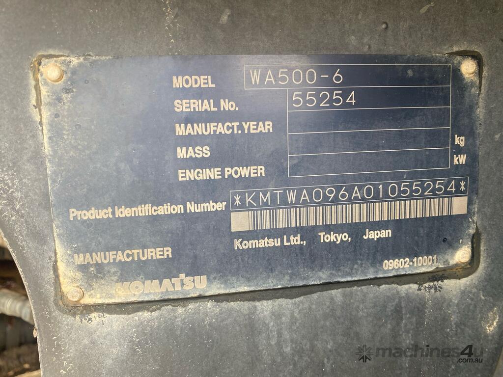 No C/P,Komatsu,WA500-6,Articulated Wheel Loader,Engine #: 533350,15 Ltr,6 Cyl,Diesel,Odometer not visible,26216 (Hrs. Showing on Hour meter),Unregistered,Serial No: 55254,Sold with No Plates