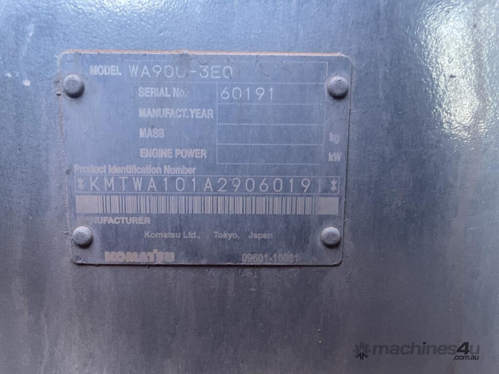 CP: CIRCA null,Komatsu,WA900-3,Articulated Loader,12 Cyl,Diesel,Turbo,Odometer not visible,Hourmeter not visible,Unregistered,Serial No: KMTWA101A29060191,Sold with No Plates