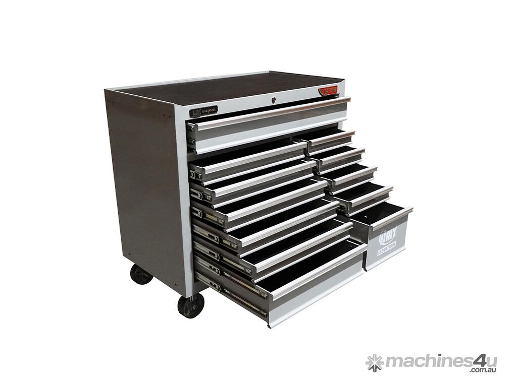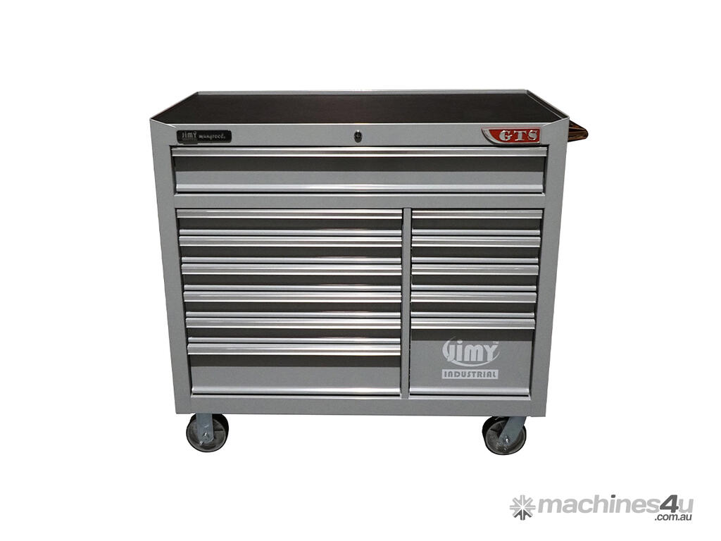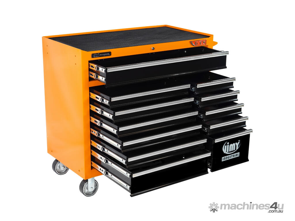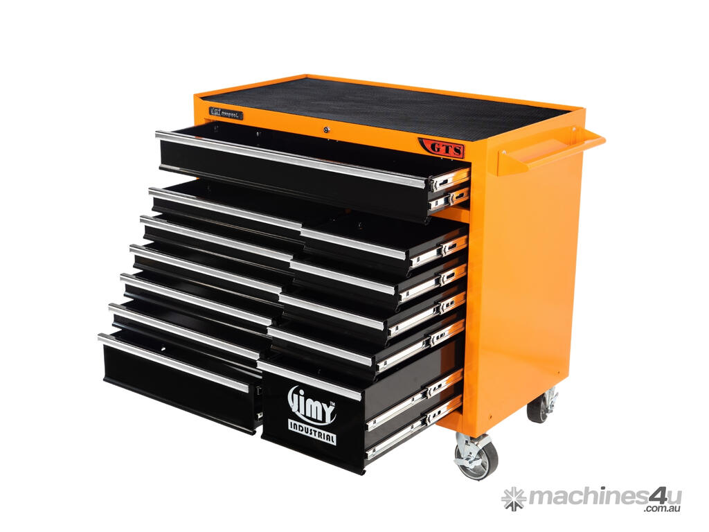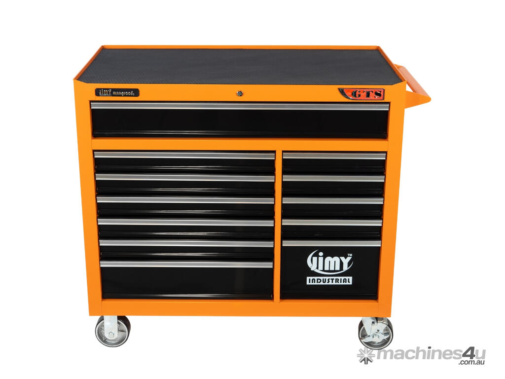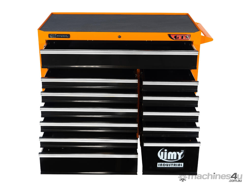 Jimy tool boxes are career spanning and built to last! Jimy tool boxes are fully modular to offer a number of storage combinations to fit your needs. With the extra deep 500mm drawers our 42” roller cabinet expands your storage capabilities and a massive 1250 kgs in weight load capacity. It features 12 drawers with full-width drawer handles, pre-cut drawer liners and a single integrated barrel lock. Durable full extension ball bearings and a tough power coated finish make this storage a perfect fit for your home garage or commercial workshop.