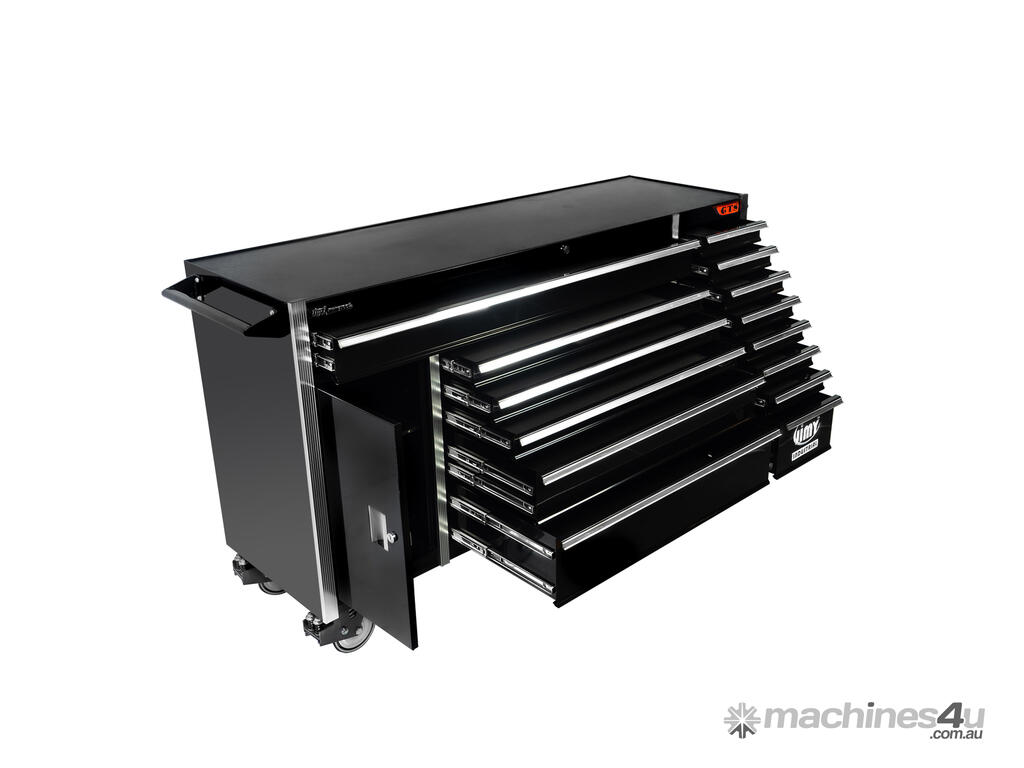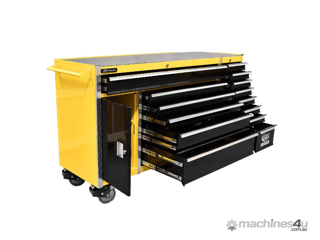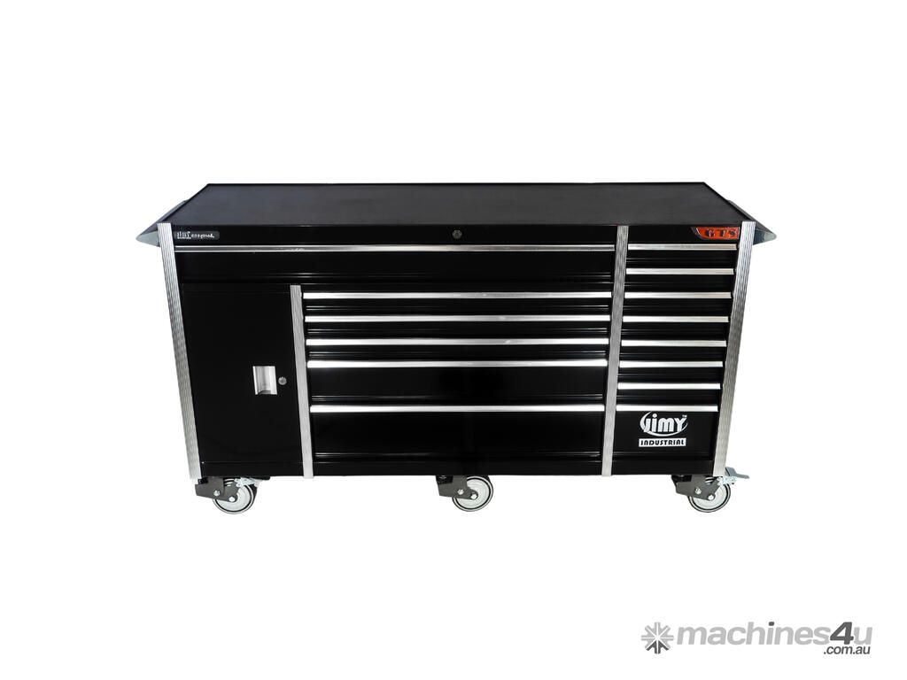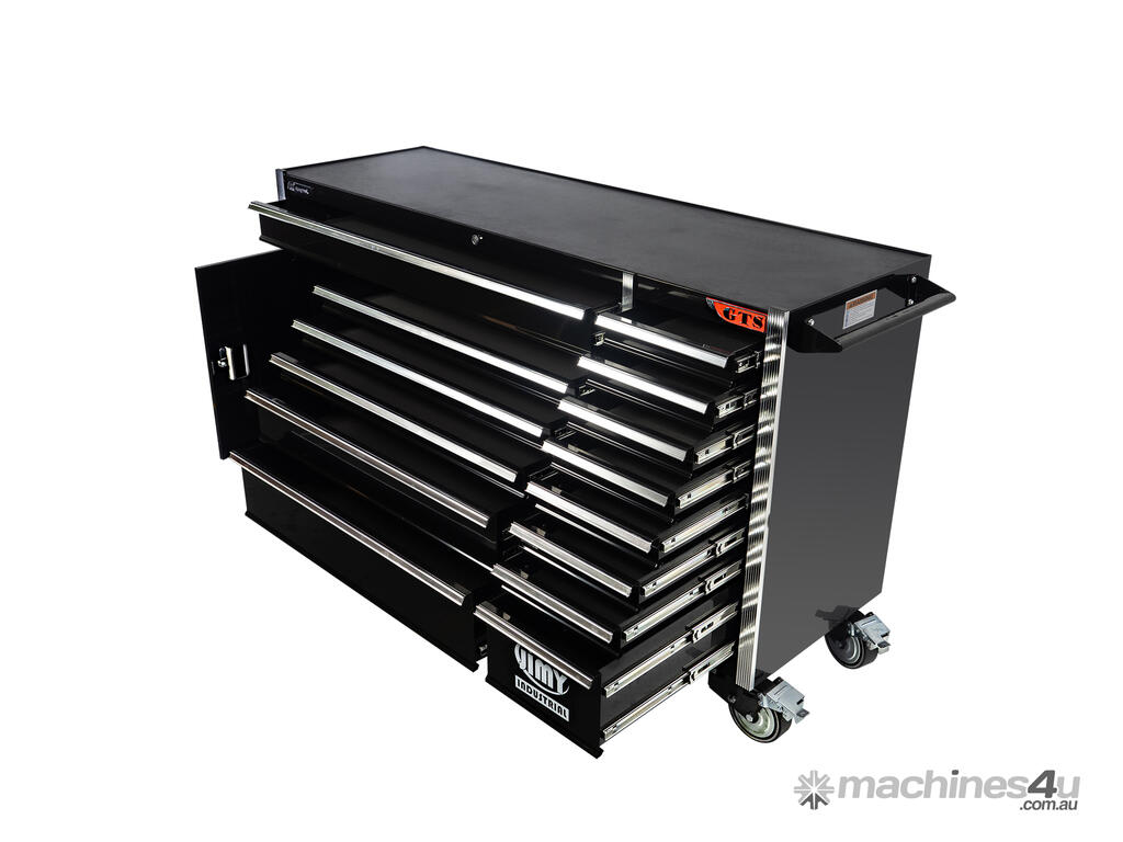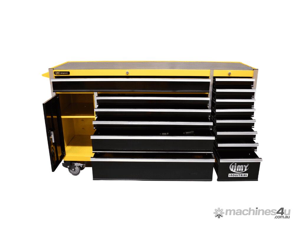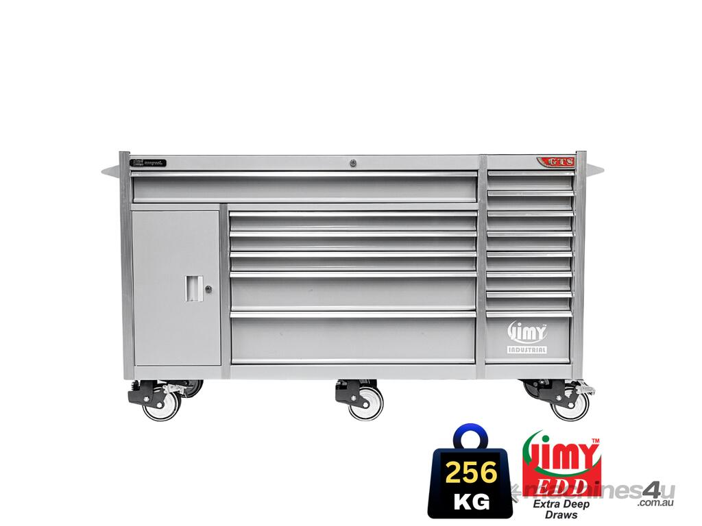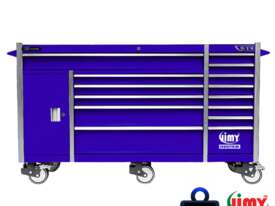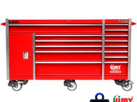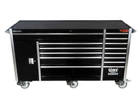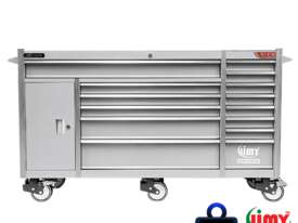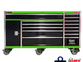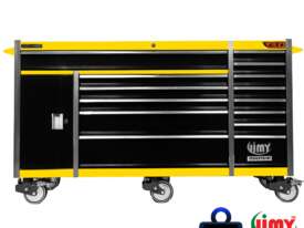 Jimy tool boxes are career spanning and built to last! Jimy tool boxes are fully modular to offer a number of storage combinations to fit your needs. With the extra deep 500mm drawers our 72” roller cabinet expands your storage capabilities and a massive 1680kgs in weight load capacity. It features 14 drawers with full-width drawer handles, pre-cut drawer liners and a single integrated barrel lock. Durable full extension ball bearings and a tough power coated finish make this storage a perfect fit for your home garage or commercial workshop.