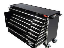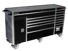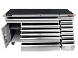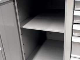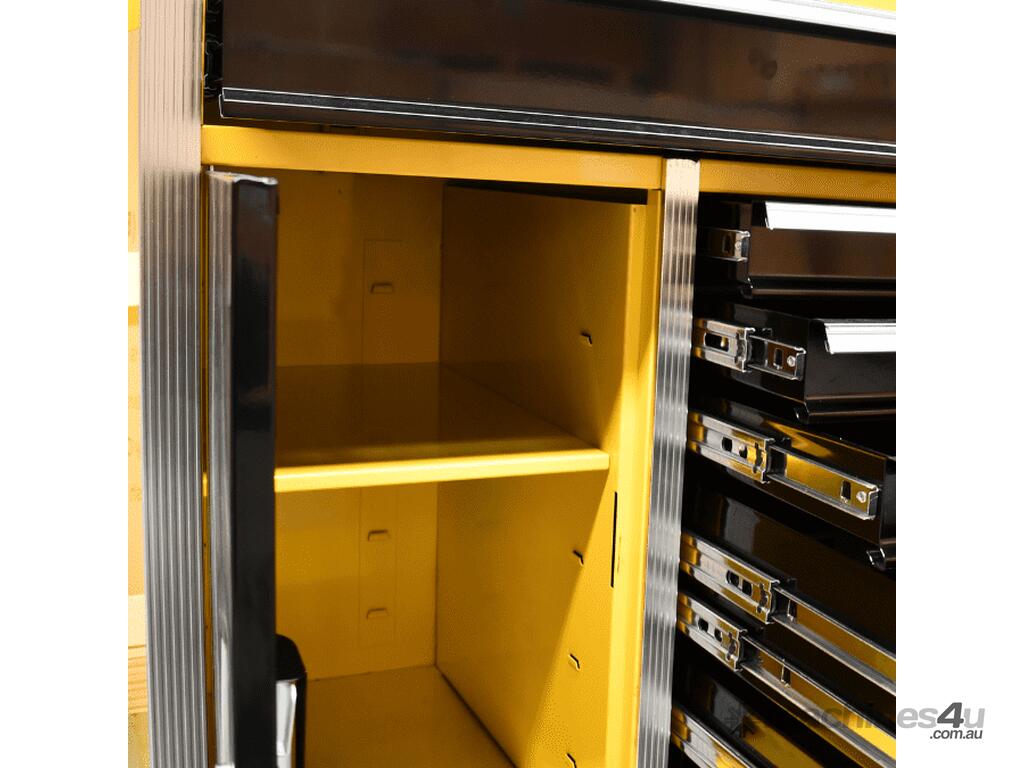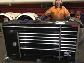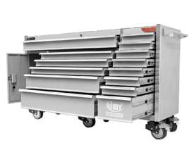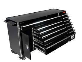 14 drawers for easy organisation of hand tools and everything else you need. The bottom left-hand cabinet is an extra large compartment for storage on bulky and heavy items such as larger power tools etc. Drawers are easily removable.