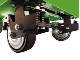 5” high and 2” wide caster wheels (2 fixed, 4 locking swivel) provide easy mobility when fully loaded