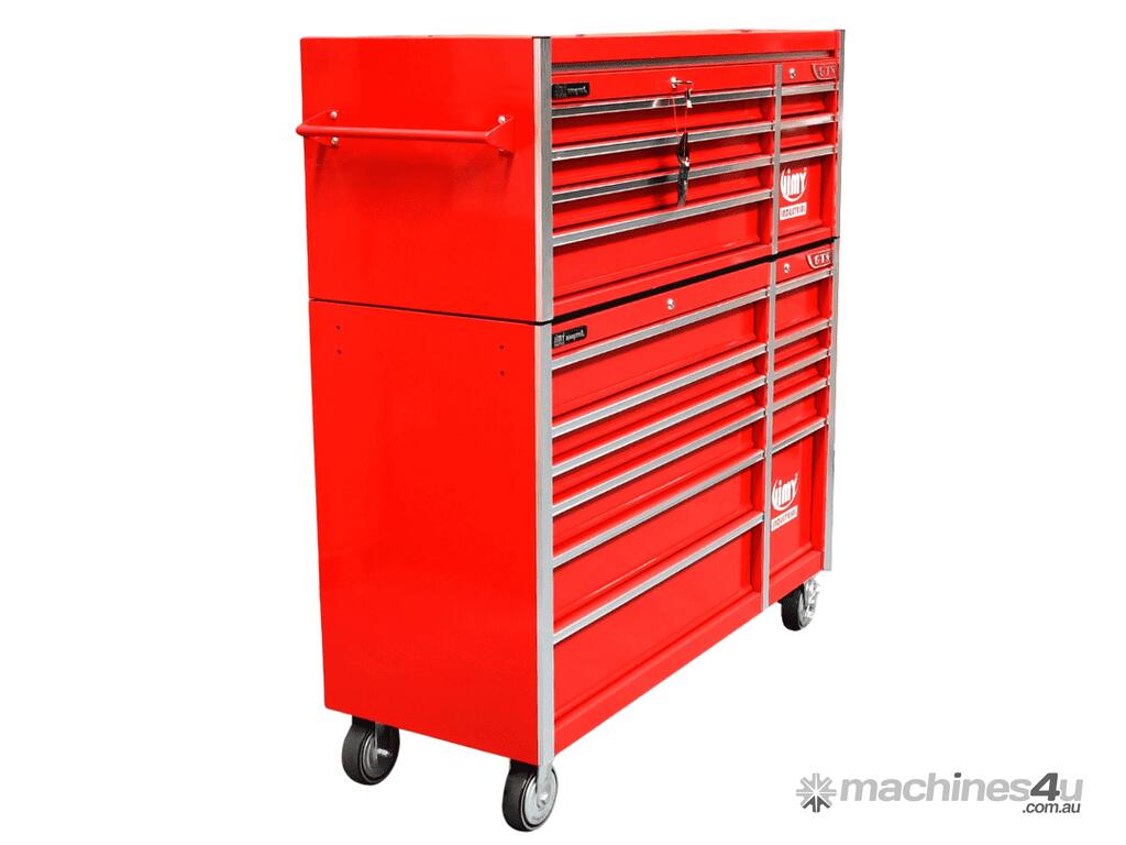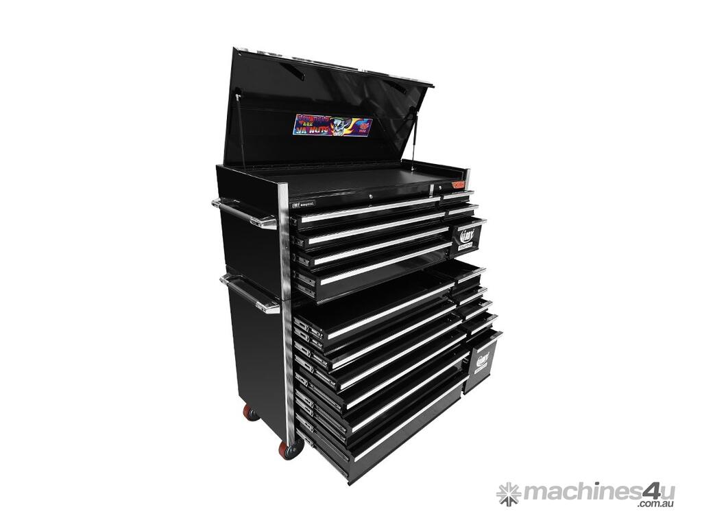 18 drawers for easy organisation of hand tools and everything else you need. The bottom right hand drawer is an extra large compartment for storage on bulky and heavy items such as larger power tools etc. Drawers are easily removable.