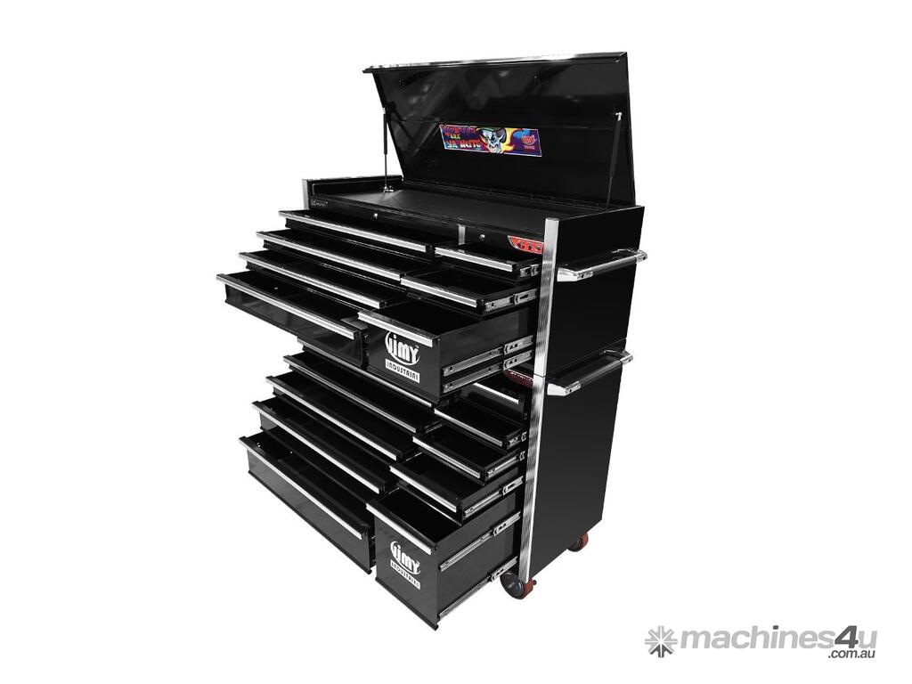 Jimy tool boxes are career spanning and built to last! Jimy tool boxes are fully modular to offer a number of storage combinations to fit your needs. With the extra deep 500mm drawers our 56” workshop expands your storage capabilities and a massive 1930kgs in weight load capacity. It features 18 drawers with full-width drawer handles, pre-cut drawer liners and a single integrated barrel lock. Durable full extension ball bearings and a tough power coated finish make this storage a perfect fit for your home garage or commercial workshop.