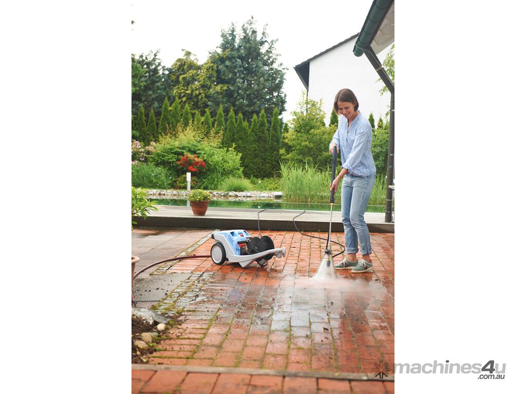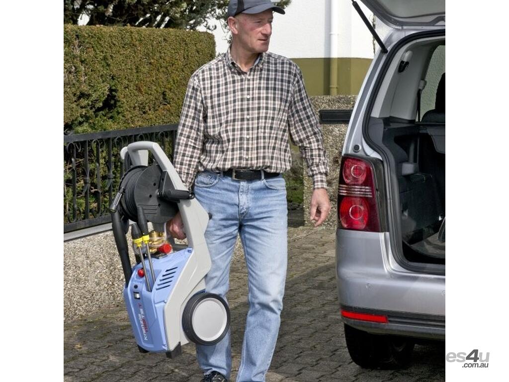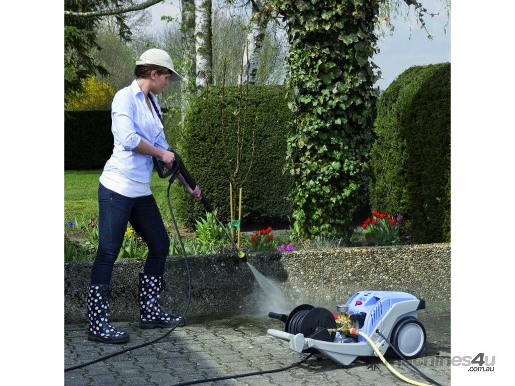 A robust cold water high pressure cleaner with integrated storage for accessories, and integrated hose reel with 15 metre high pressure hose. Features total stop automatic switch off function, brass pump head and stainless steel valves for maximum pump life. Includes fan-jet lance and DirtKiller turbo nozzle.