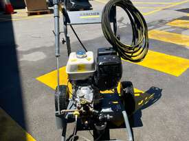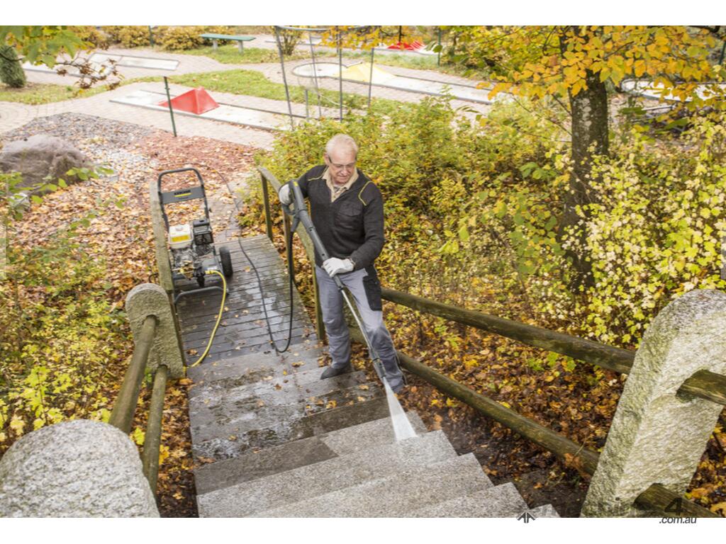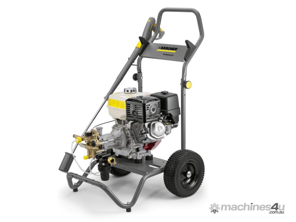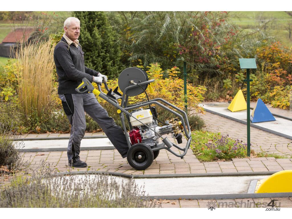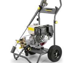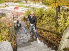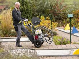 Fitted with a Honda petrol engine, the HD 9/23 G cold water high-pressure cleaner works completely independently of the power connection. Developed for the best cleaning results – thanks to a water pressure of 230 bar – and protected by a very robust basic frame, the machine impresses even under extreme conditions. The ergonomic frame concept offers maximum mobility, even on uneven surfaces. Puncture-proof wheels, the successful operating concept and a range of storage possibilities for accessories make the machine very convenient to use. Other convenient features include the EASY!Force high-pressure gun, which makes use of the recoil force of the high-pressure jet to reduce the holding force for the operator to zero, and the EASY!Lock quick-release fasteners, which make set-up and dismantling five times faster than with conventional screw connections. The powerful pump enables the removal of water from lakes or ponds in an emergency. It is protected by a large water filter and a thermostat valve which prevents it from overheating in recirculation mode. Also available for the HD 9/23 G is a cage frame with eyelets to facilitate crane loading, as well as an attachment kit for a hose reel.
