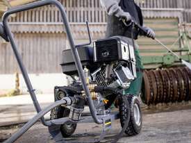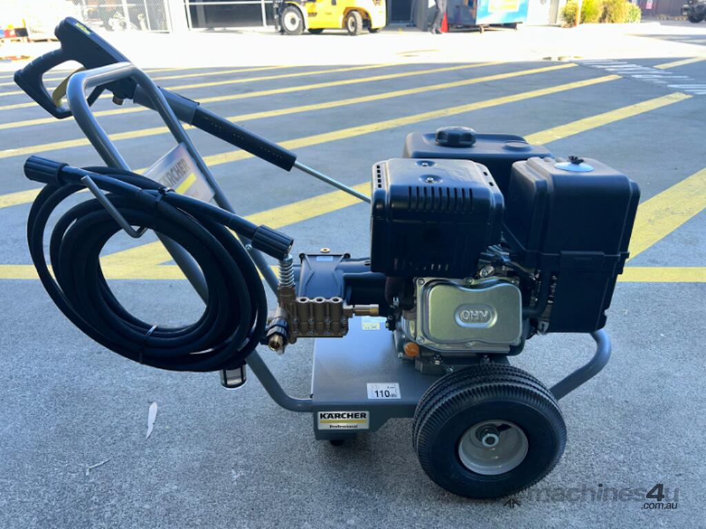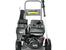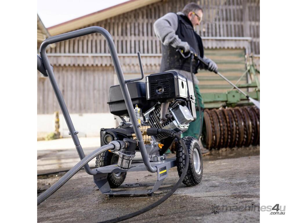 With a working pressure of up to 250 bar, 900 litres of water per hour and robust crankshaft pump, the HD 9/25 G Classic cold water high-pressure cleaner can effortlessly master even highly demanding cleaning tasks. Thanks to the powerful EU STAGE V petrol engine, which eliminates the need for an external power supply, and equipped with a robust tubular steel frame and puncture-proof wheels, the HD 9/25 G Classic is suitable for heavy-duty use on construction sites, in handicraft, in municipalities or by building service contractors. An ergonomic push handle and very compact dimensions and accessory storage for, for example, high-pressure hose and lance, make the machine easy to handle and transport in a car. Important machine components are easily accessible for servicing tasks and effectively protected by thermo and safety valves, as well as a large water filter.