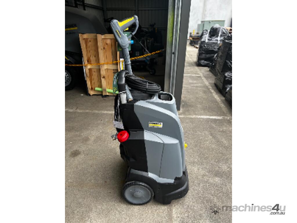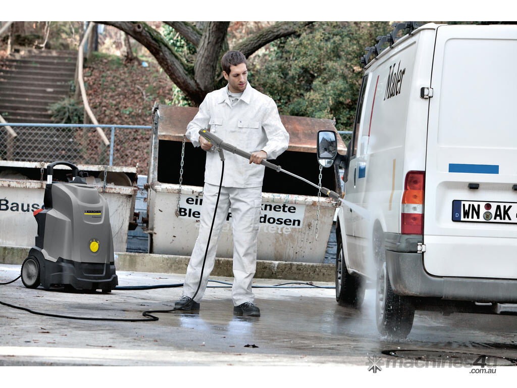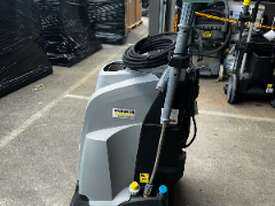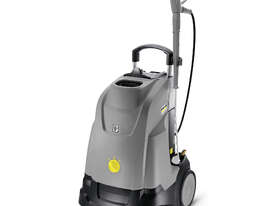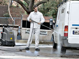 The main benefit of the new "Upright"-class class of hot water high-pressure cleaners is the horizontal machine concept. This ensures low weight, compact dimensions and the ease with which they can be loaded and transported. They fit also easily in vertical position in a station wagon for transportation from one location to the next. Thanks to their compact size, these units take up a minimum of storage space when they are not in use. Large diameter wheels as well as a ergonomically shaped push/pull handle ensure excellent manoeuvrability and mobility, even on difficult surfaces. The three-piston axial high-pressure pump has hardened stainless-steel pistons and a brass cylinder head. A pressure switch shuts down the unit automatically when the trigger gun is closed. This relieves the load on components and prolongs their service lives. High-pressure pump, burner fan and heating oil pump are driven by an electric motor and are combined to form a drive module. This principle not only ensures a very compact assembly and a high power output, it also makes the units exceptionally reliable. The characteristics of the time-proven Kärcher boiler-technology are high performance in a minimum of space while ensuring full compliance with the statutory emission limits. Single-phase unit with air-cooled two-pole electric motor. Three-piston axial pump with hardened stainless-steel pistons. Chemical feed in low-pressure mode.