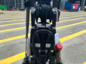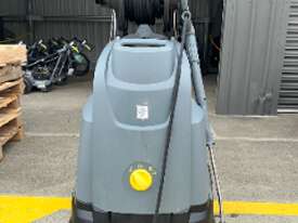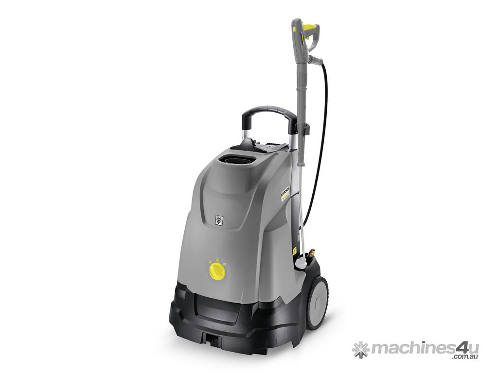 The main benefit of the new "Upright"-class class of hot water high-pressure cleaners is the horizontal machine concept. This ensures low weight, compact dimensions and the ease with which they can be loaded and transported. They fit also easily in vertical position in a station wagon for transportation from one location to the next. Thanks to their compact size, these units take up a minimum of storage space when they are not in use. Large diameter wheels as well as a ergonomically shaped push/pull handle ensure excellent manoeuvrability and mobility, even on difficult surfaces. The three-piston axial high-pressure pump has hardened stainless-steel pistons and a brass cylinder head. A pressure switch shuts down the unit automatically when the trigger gun is closed. This relieves the load on components and prolongs their service lives. High-pressure pump, burner fan and heatingoil pump are driven by an electric motor and are combined to form a drive module. This principle not only ensures a very compact assembly and a high power output, it also makes the units exceptionally reliable. The characteristics of the time-proven Kärcher boiler-technology are high performance in a minimumof space while ensuring full compliance with the statutory emission limits. Single-phase unit with air-cooled two-pole electric motor. Three-piston axial pump with hardened stainless-steel pistons. Chemical feed in low-pressure mode.