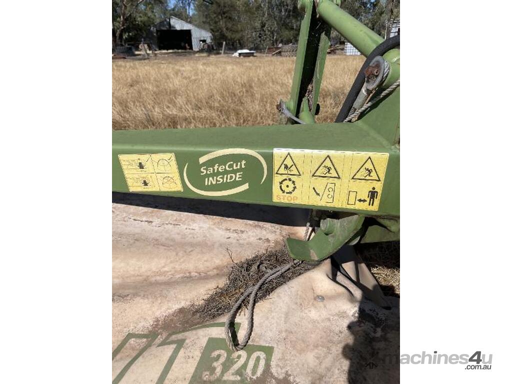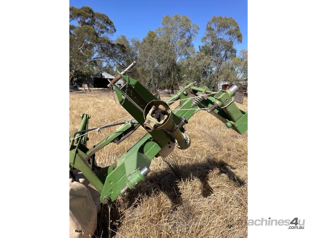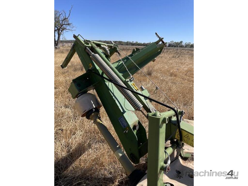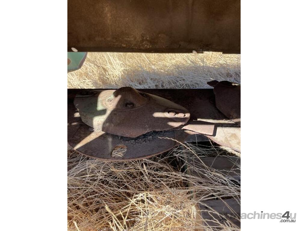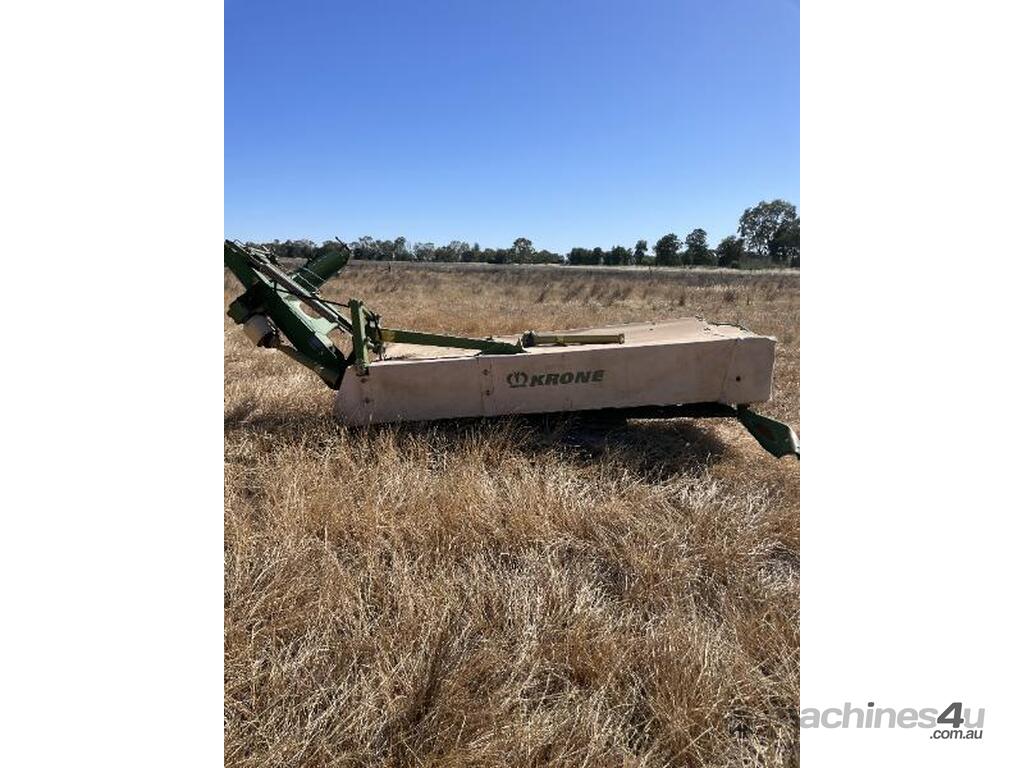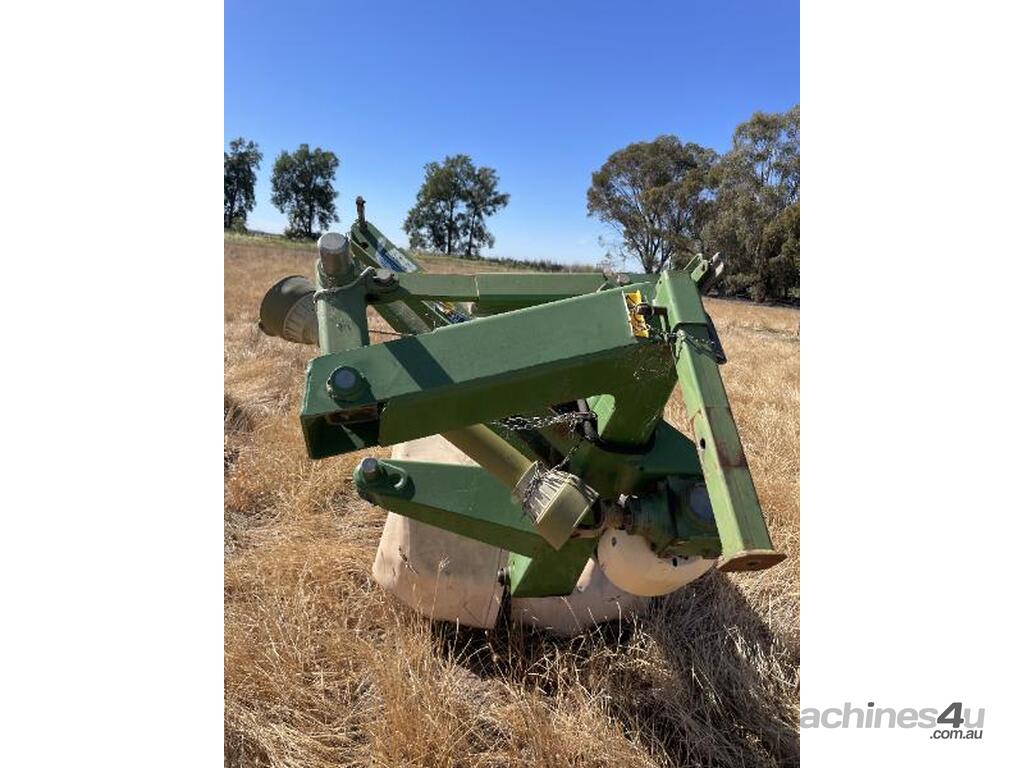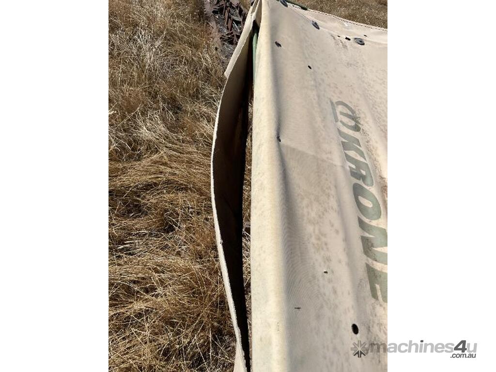Krone Disc Mower, 7 discs wide, hydraulic fold, 3 point linkage, PTO driven. The skirt over the mower is ripped as seen in photos, other than ripped skirt it is in working condition.