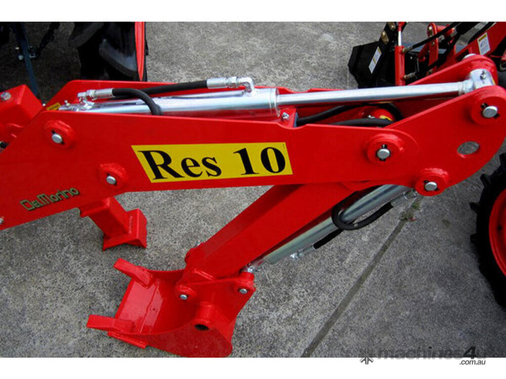 Del Morino RES10 Backhoe Overview: The Del Morino RES10 backhoe is designed for sub-compact tractors, providing exceptional performance while remaining lightweight. It can be transported securely on the tractor's 3-point linkage and folded close for convenient storage.
