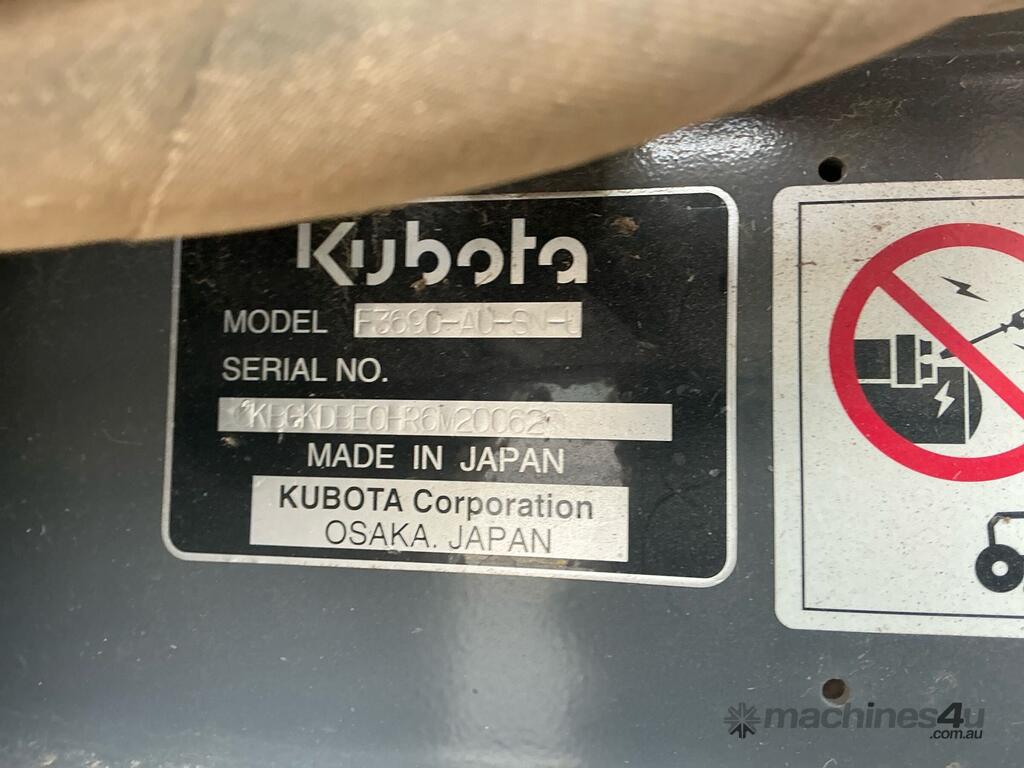 No C/P,Kubota,F3690-AU,Ride On Mower,Diesel,Odometer not visible,85 (Hrs. Showing on Hour meter),Colour: Orange,Rego. No: NP(20057), Unregistered,VIN: KBGKDBE0HR6M20062,Sold with No Plates