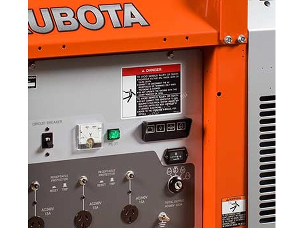 The Kubota GL9000 is a two pole, silent type, direct coupled, single phase diesel engine with a capacity of 8kVA at 3000RPM.