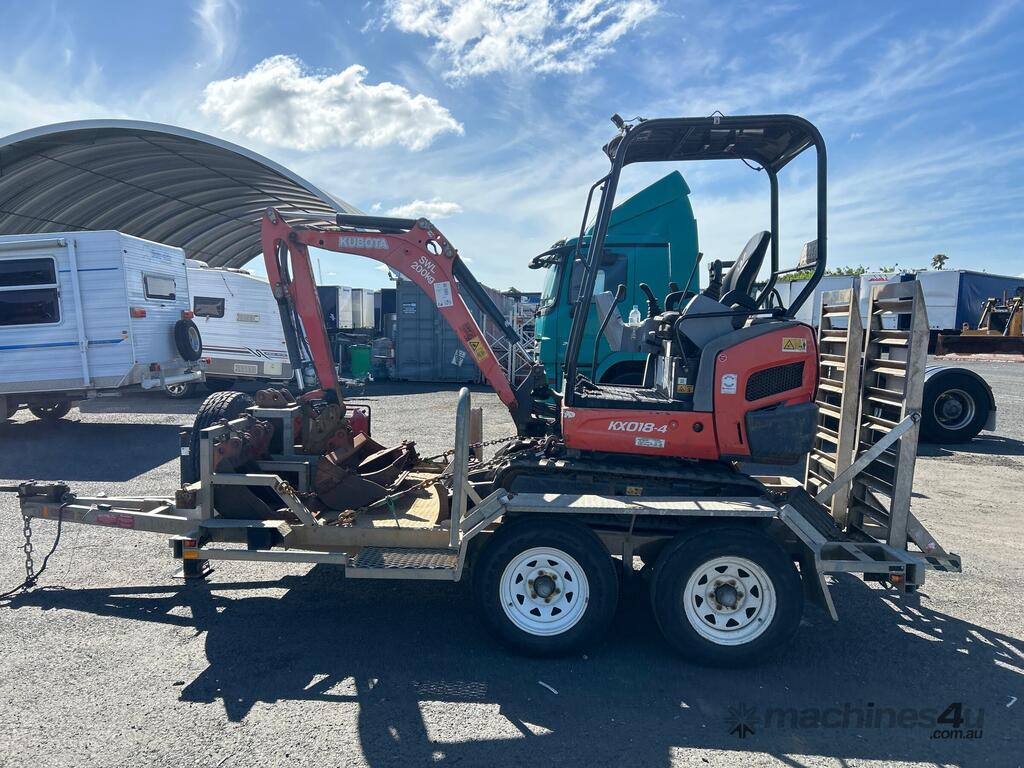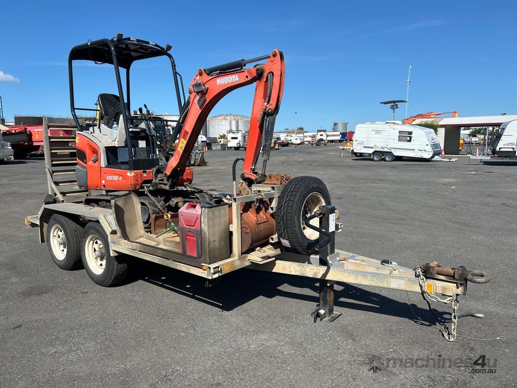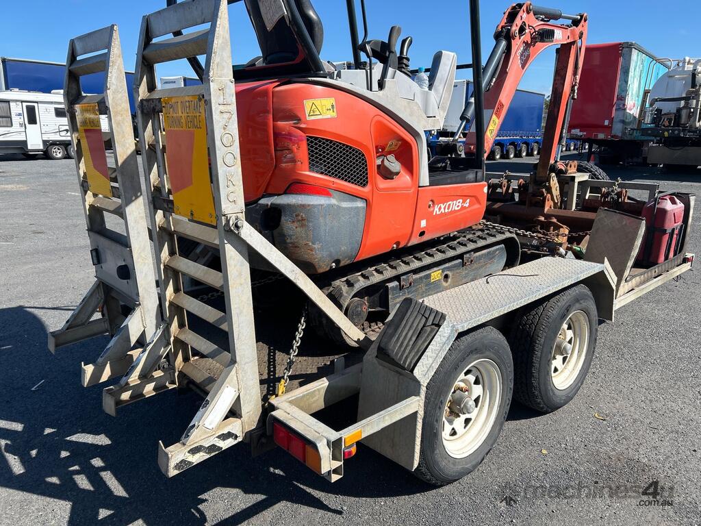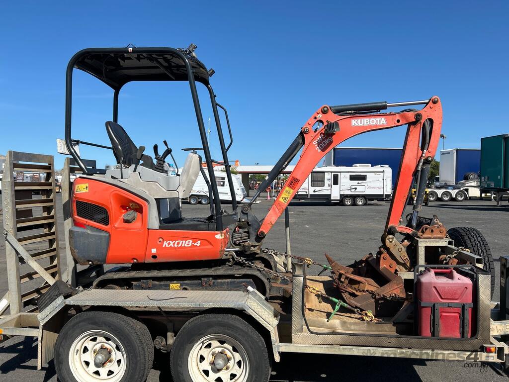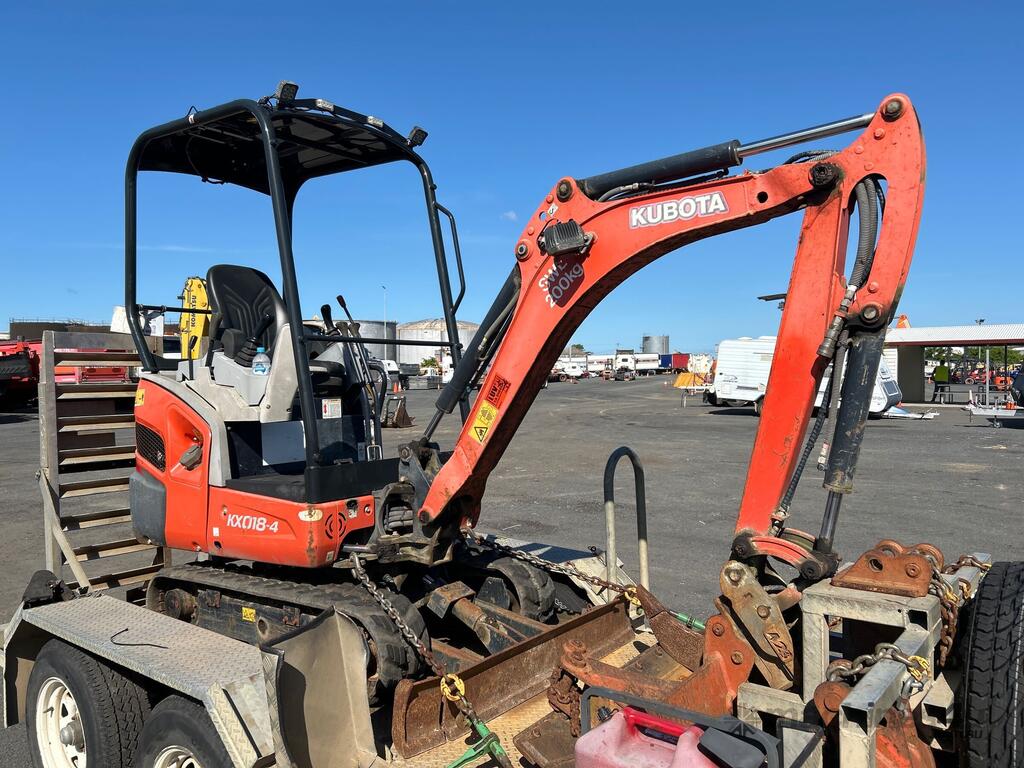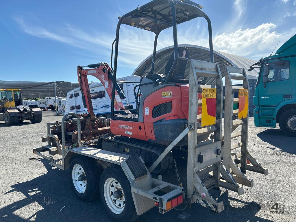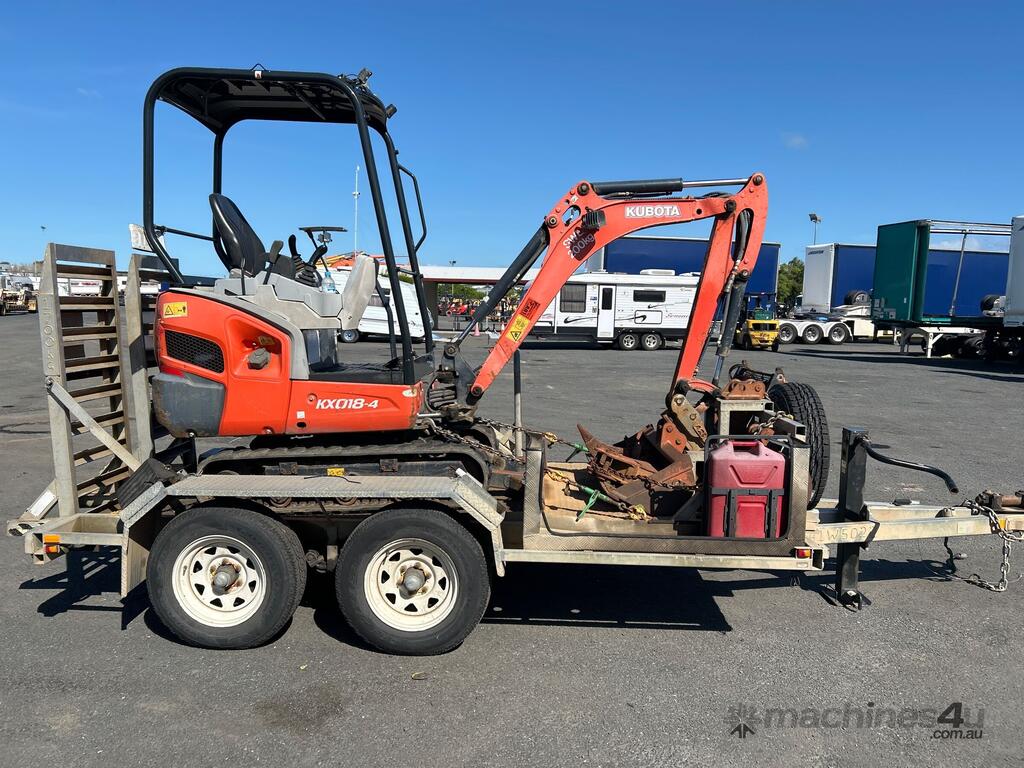 No C/P,Kubota,KX018-4,Excavator & Trailer,Diesel,Odometer not visible,Hourmeter not visible,Colour: Orange,Unregistered,Serial No: WKFRGF1000Z043258,Sold with No Plates,Key No: 185