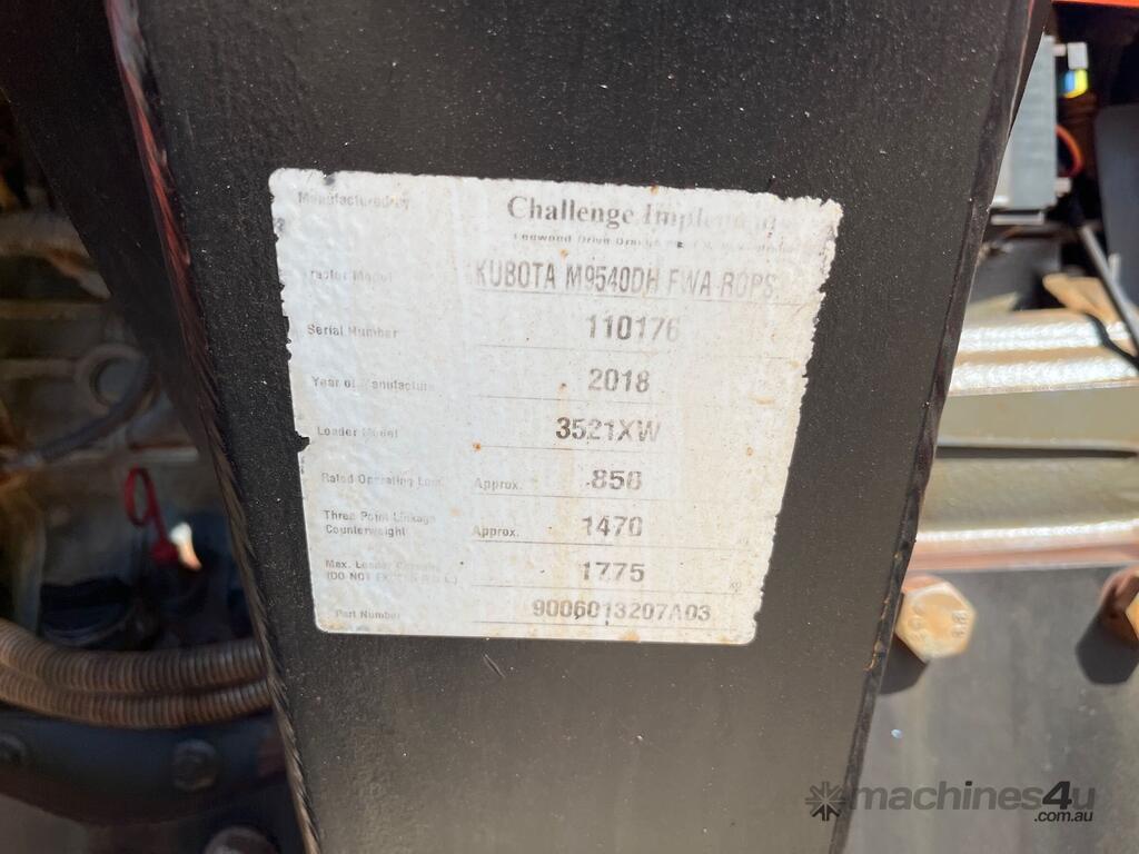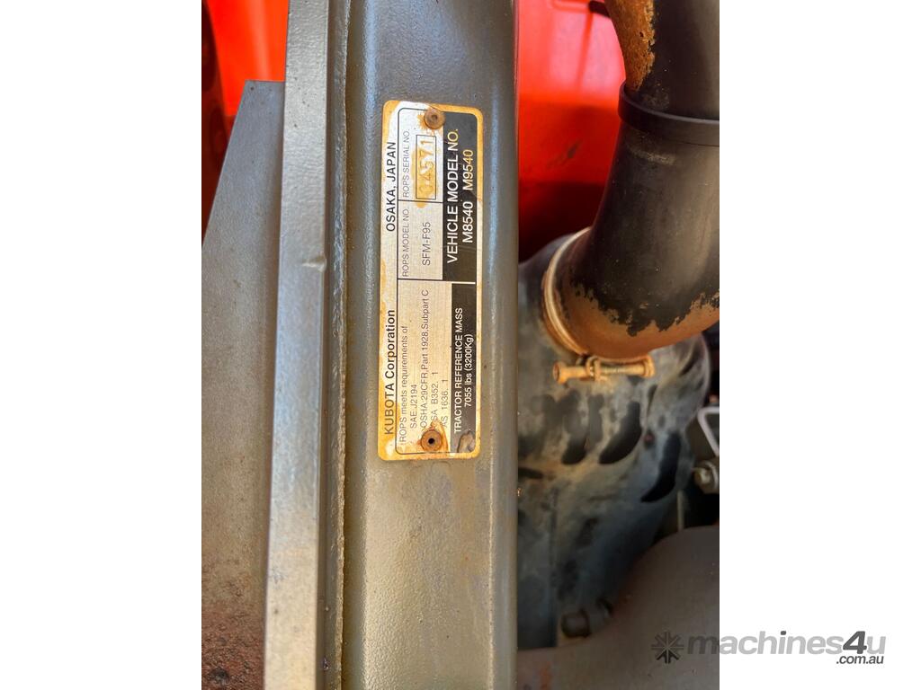 No C/P,Kubota,M9540D,Tractor / Loader,4 Cyl,Diesel,Odometer not visible,2104 (Hrs. Showing on Hour meter),Colour: Orange,Rego. No: NP(71541C), Unregistered,Chassis: 14774,Serial No: 14774,Sold with No Plates