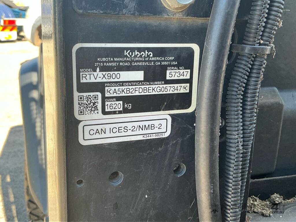 No C/P,Kubota,RTV 900XT,ATV 4WD,Engine #: 4KMA457,3 Cyl,Diesel,Odometer not visible,2415 (Hrs. Showing on Hour meter),Colour: Orange,Unregistered WA,Serial No: 57347,Sold with No Plates,Key No: 264