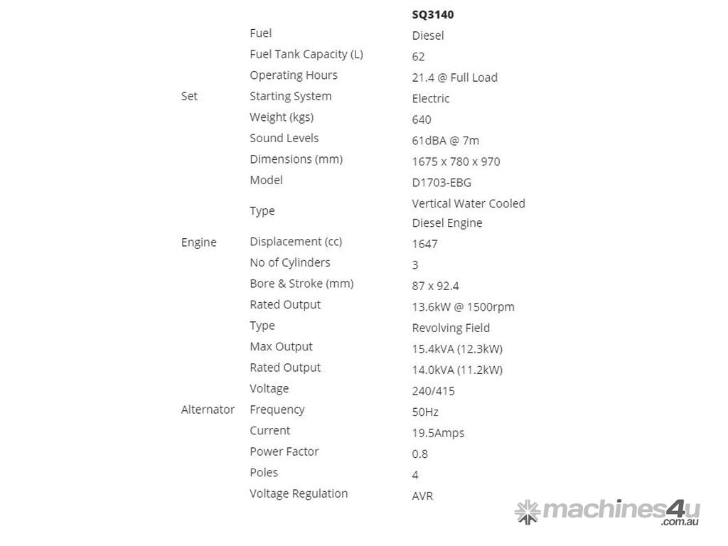 The Kubota SQ3140 is a premium compact three phase four pole diesel generator with a capacity of 14kVA at 1500RPM. Fully sound attenuated for a super quiet operation.