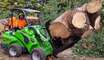 ArborPro Articulated Mini Loader Lift capacity 800 kg Lift height 2.8 m Engine power 22 hp Drive speed 12 km h Unbeatable power - price ratio. Kubota Diesel Engine Excellent choice with robust and simple hydraulics. Excellent Power Weight Ratio. Ideal arborist machine. The Avant 523 ArborPro compact articulated mini loader has excellent power to weight ratio that is excellent for treework. The Avant 523 ArborPro mini loader with log grab is well suited to treework thanks to the power and straight forward hydraulics, which is needed when working with trees. The compact dimensions and ....