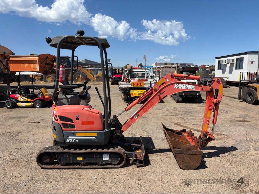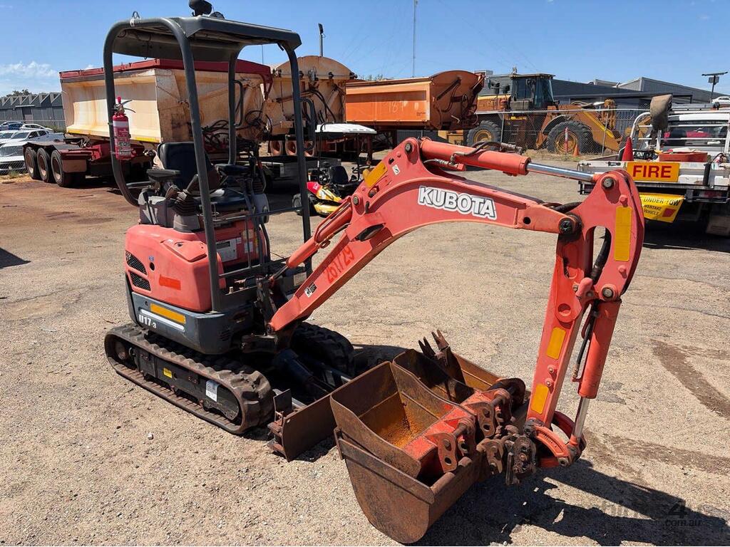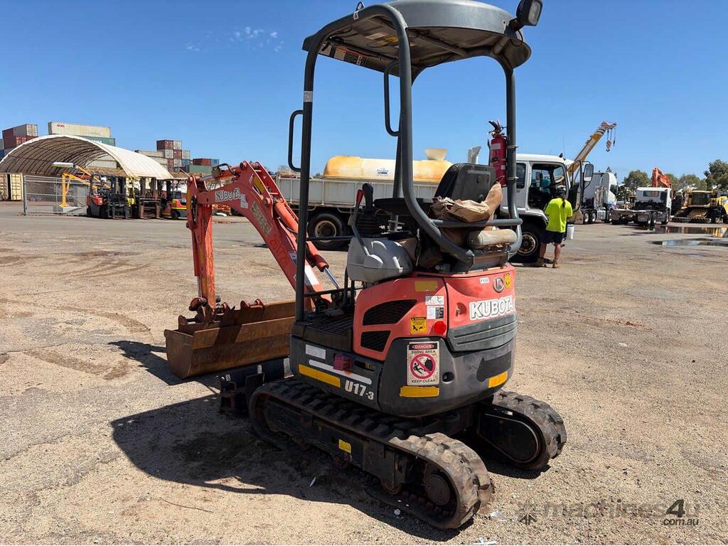 No C/P,Kubota,U17-3,Excavator (Rubber Tracked),3 Cyl,Diesel,Odometer not visible,336 (Hrs. Showing on Hour meter),Colour: Orange,Unregistered WA,VIN: JKUU0173C01H41704,Serial No: JKUU0173C01H41704,Sold with No Plates,Key No: 592