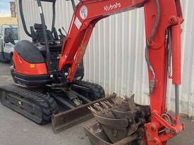 Sold new by us in March 2021, this Kubota U25-3 HG is the current-model 2.5 tonne zero tail swing excavator, ideal for tight-access work.