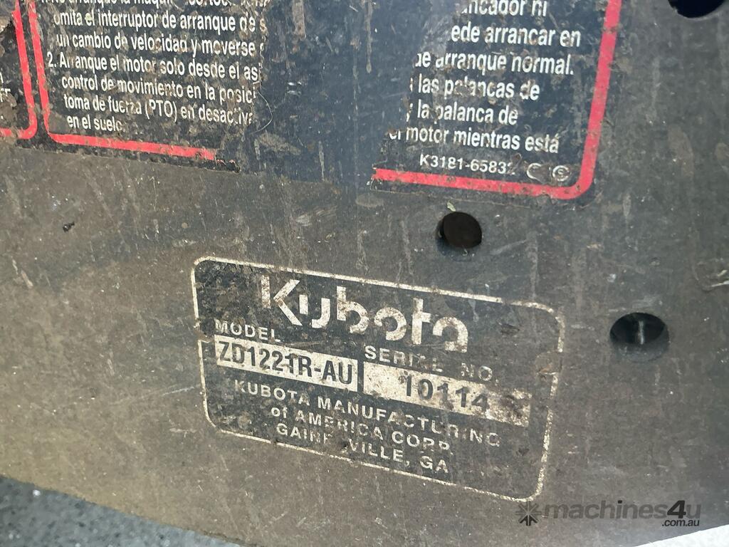 No C/P,Kubota,ZD1221R-AU,Ride On Mower,Diesel,Odometer not visible,1186 (Hrs. Showing on Hour meter),Colour: Orange,Unregistered,Serial No: 10114,Sold with No Plates