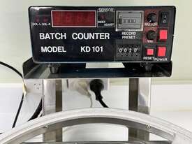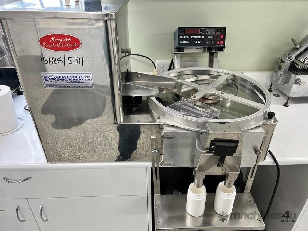 This Kwang Dah KD-101 is a fully operational capsule/tablet counting machine with stainless steel construction, upgraded electronics, and a working demonstration video. Ideal for compounding pharmacies, nutraceutical production, supplement packaging and laboratories. Excellent value vs new units.
