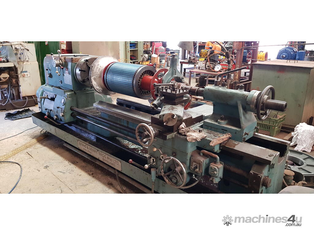 Binns & Berry Heavy Duty Double Gap Bed Lathe. 1150mm swing in gap and 2meters between centre's. Comes with a variety of chucks, face plates, small and large steadies, tool holders and near new live centre. Also comes with a small lathe. Lathe's are old well used machines in fair condition and are suitable for maintenance and repairs of mining equipment etc. Located in Kalgoorlie.