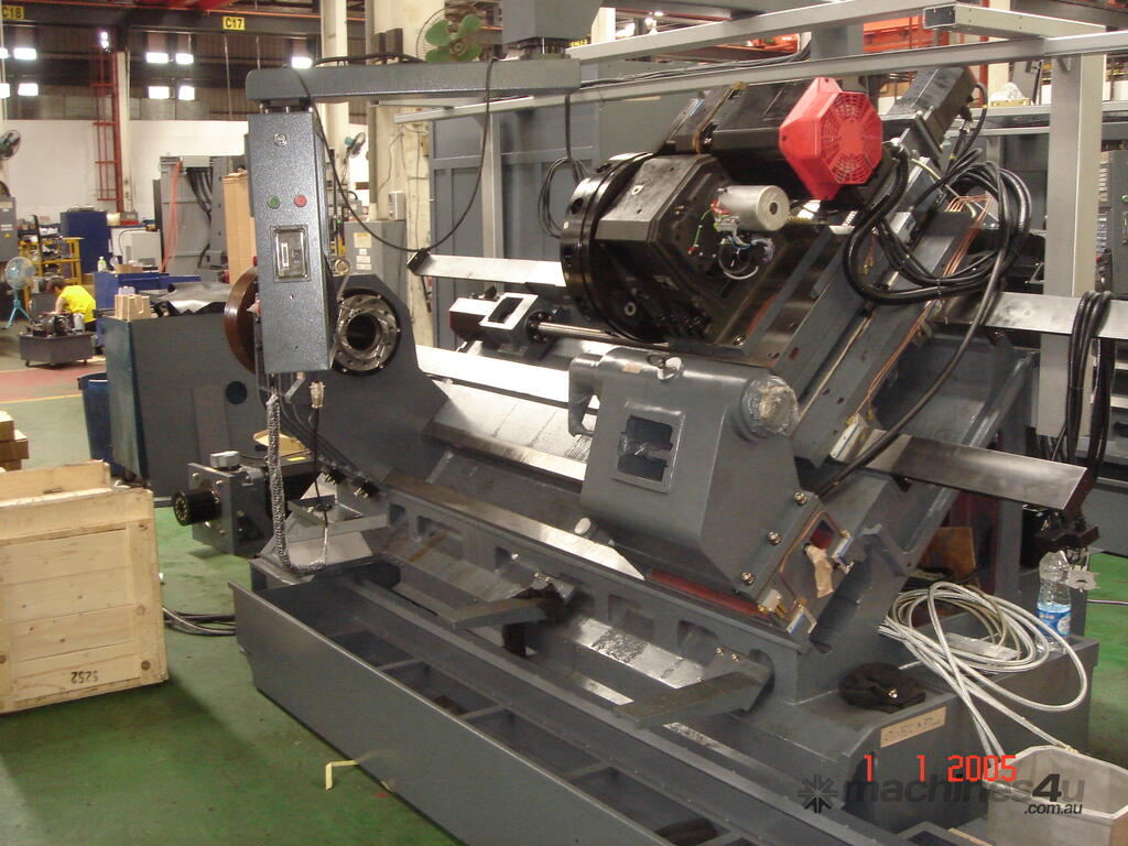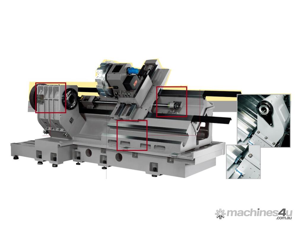 Extra wide span oversized box ways in combination with the extremely rigid base frame provide the possibility of high precision, high horsepower machining and outstanding stability for precision turning.