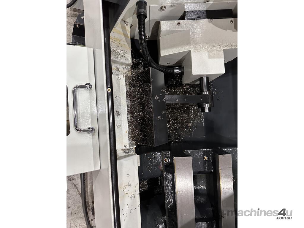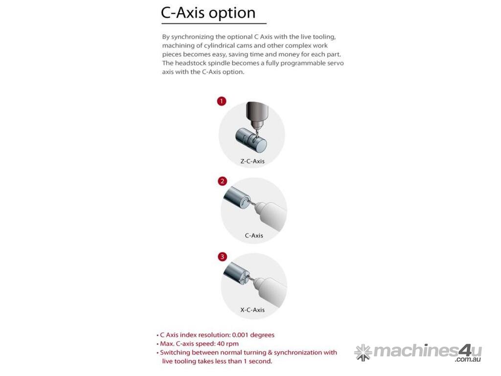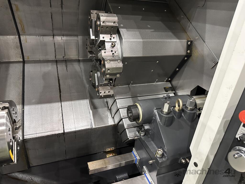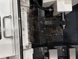 Special software allows the work piece to be transferred from the main spindle to the sub spindle at any speed for secondary machining operations as well as machining both ends of parts.