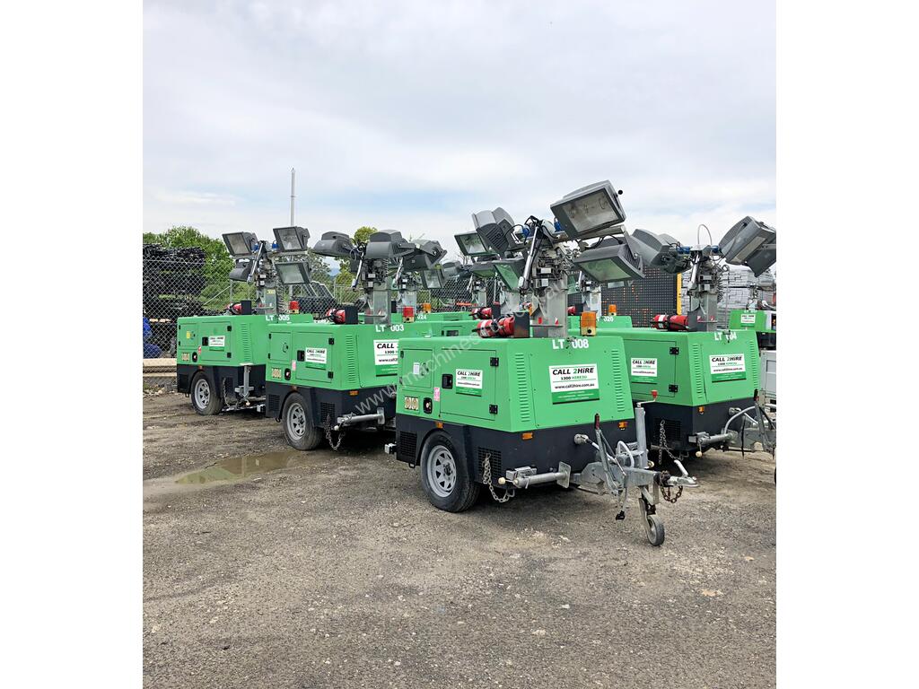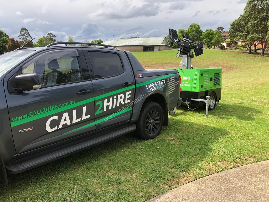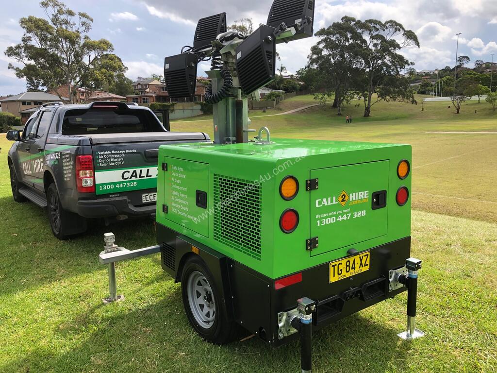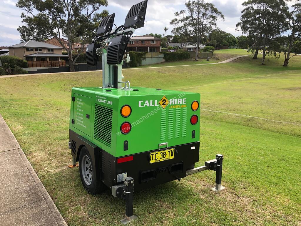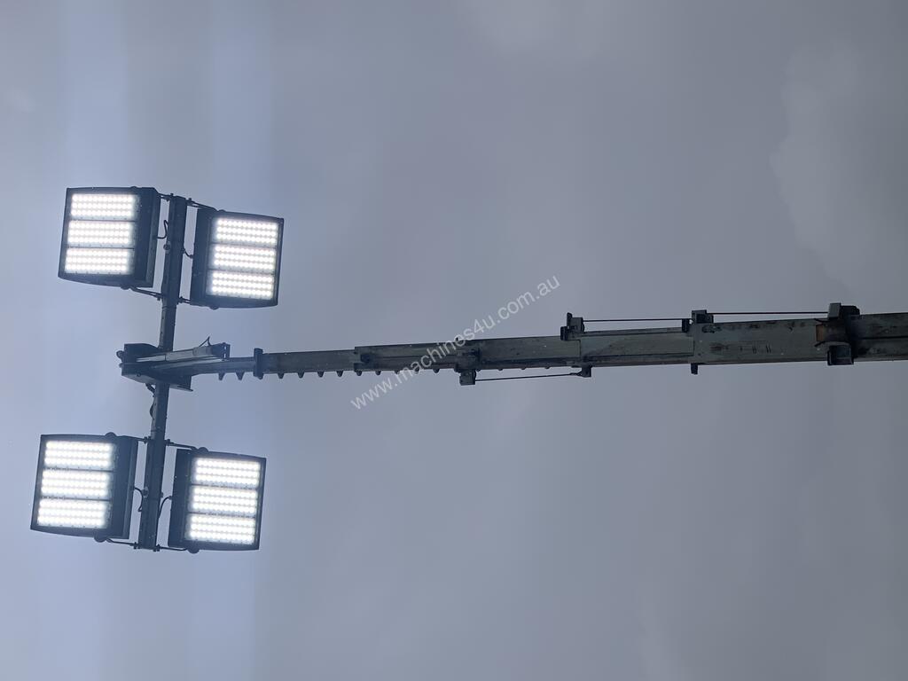 Mobile diesel lighting towers offering 4000 watts with 9 metre Hydraulic operational telescopic mast with 65 hours running time per diesel tank of fuel. light coverage 4200 Square metres. 360 degrees rotation and 90 degrees light adjustments.