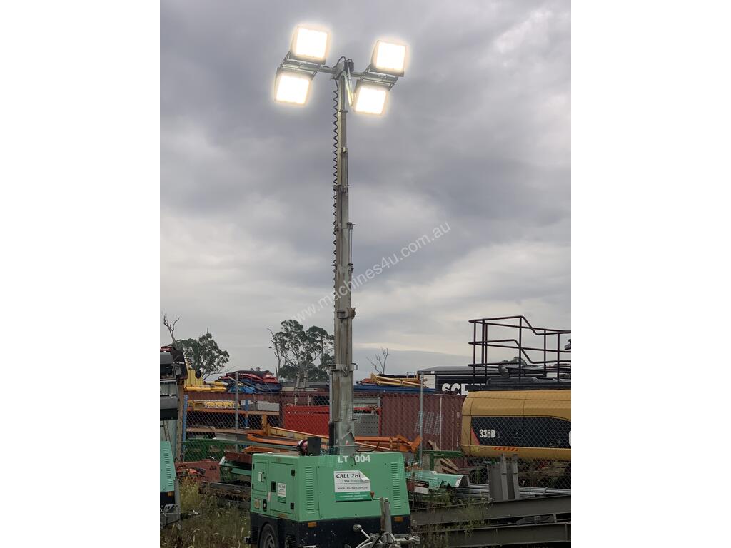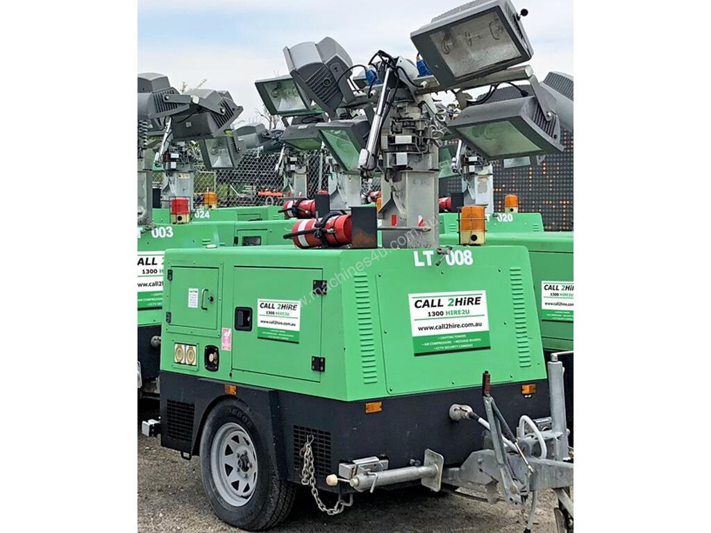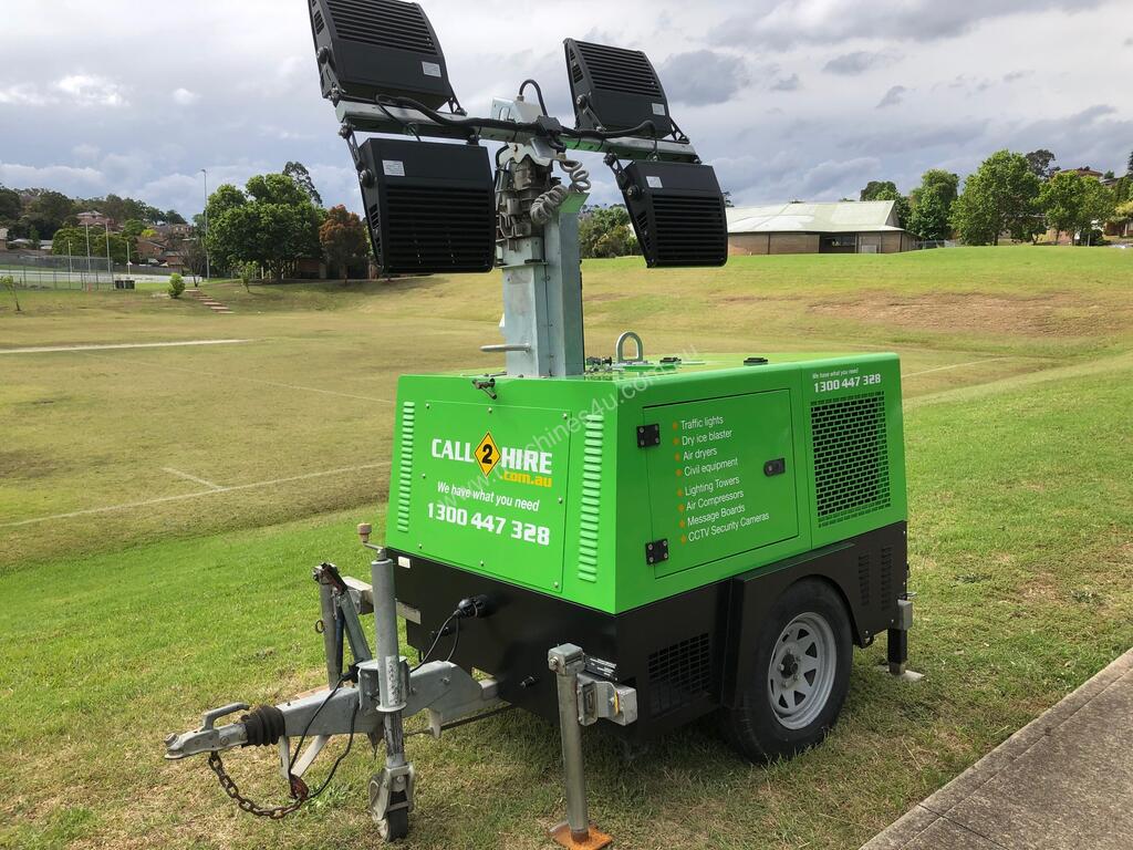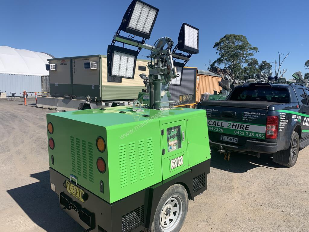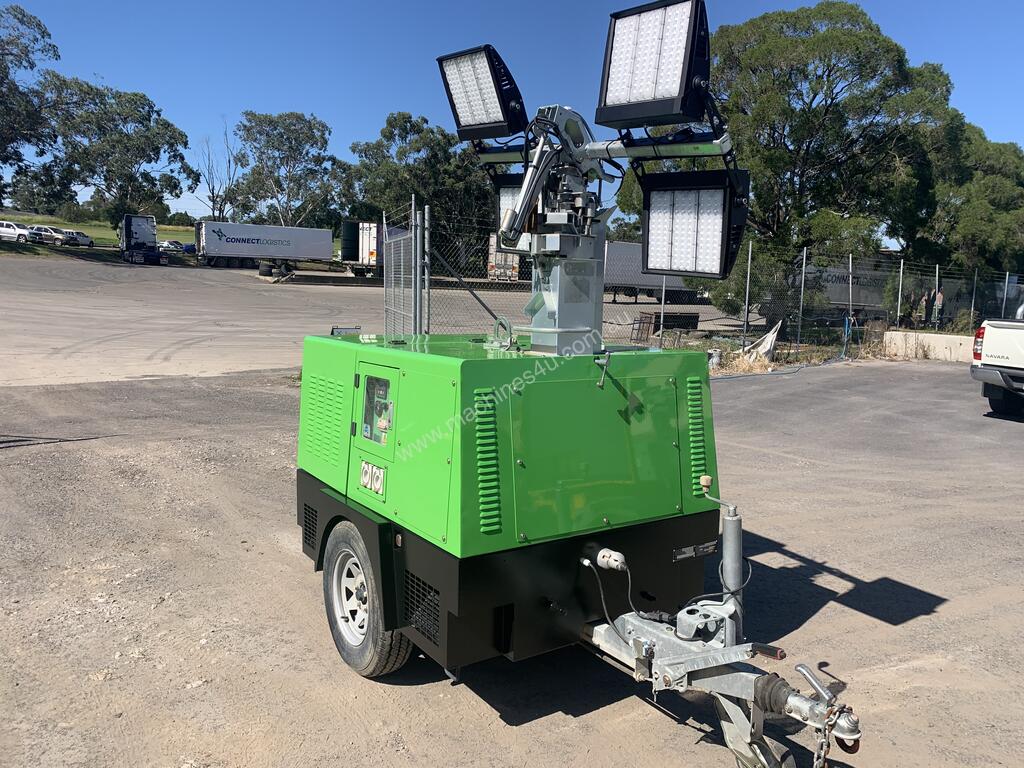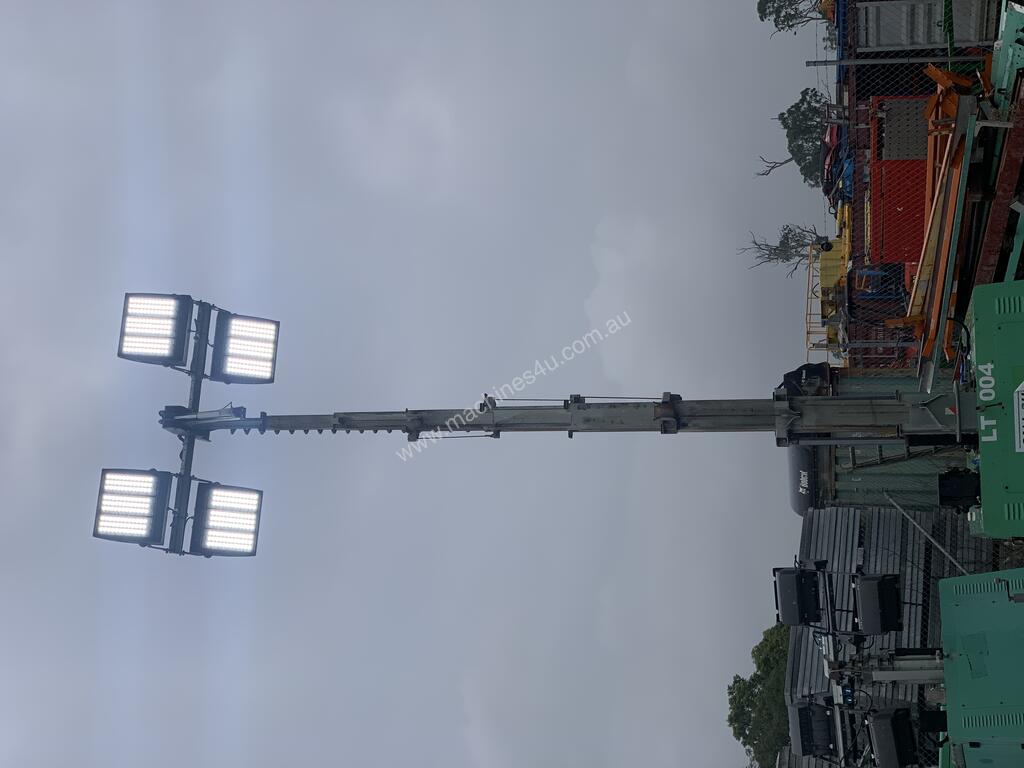Mobile diesel lighting towers offering 4000 watts with 9 metre Hydraulic operational telescopic mast with 65 hours running time per diesel tank of fuel. light coverage 4200 Square metres. 360 degrees rotation and 90 degrees light adjustments.