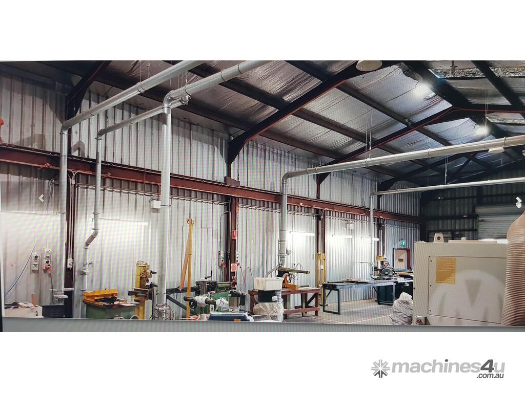 6). SPEEDLOCK GALVANISED DUCTING PIPE & FITTINGS, COMPLETE DUST EXTRACTION SET-UP FOR MEDIUM-SIZE JOINERY/CABINET MAKER/ FACTORY etc. CAPACITY 8-9 MACHINES, PLUS GATES, WALL VACUUMS ETC.