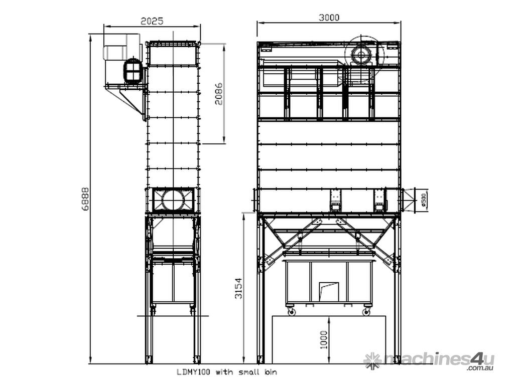 The base of a Gove extractor can be made to a height and width to suit whatever type of bin or vehicle the purchaser wishes to use to receive the waste.