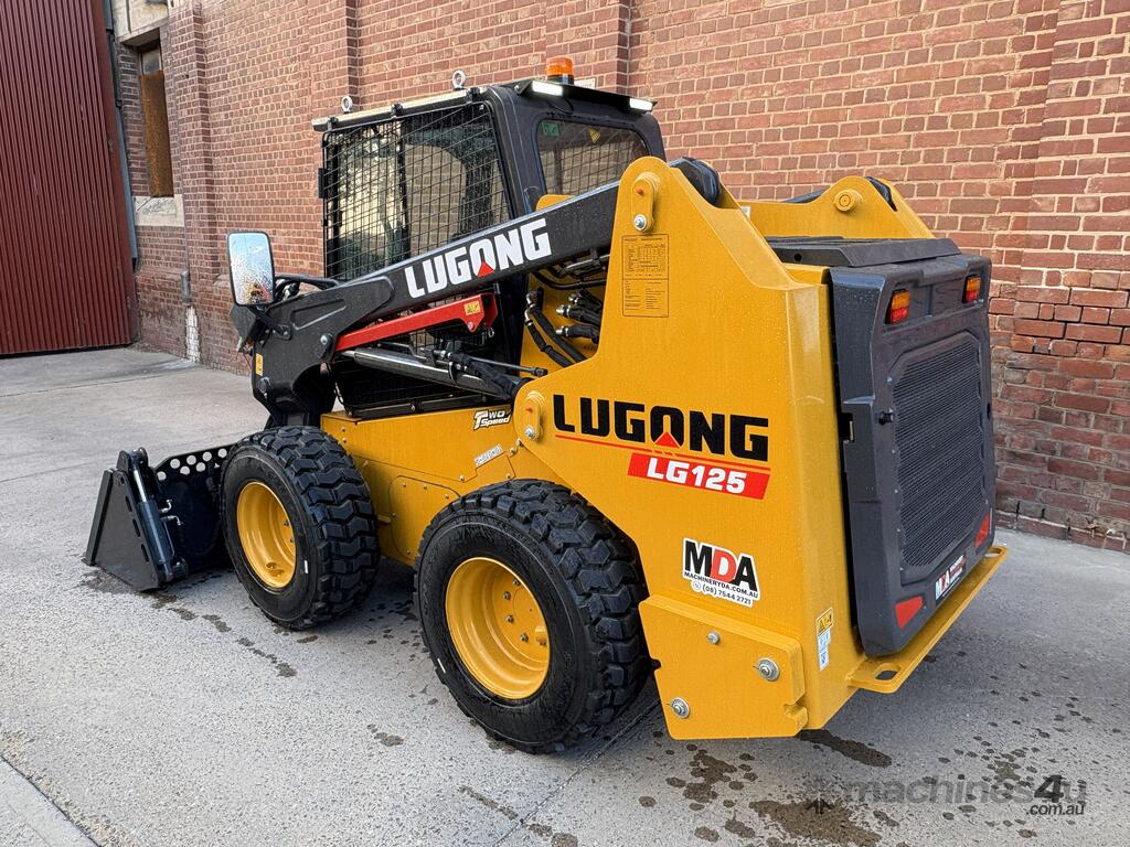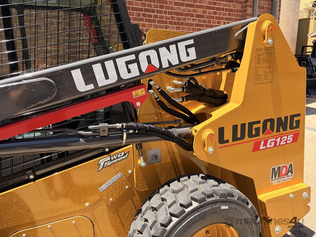 The Lugong LG125 is a compact, skid steer loader designed for tight spaces, offering heavy-duty performance in a small package, ideal for landscaping or indoor work, emphasising versatility with attachments, typical of budget-friendly machinery compared to premium brands, often found in the lower-cost spectrum of the market.