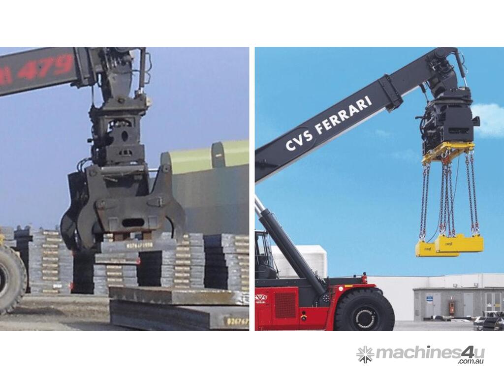 Ferrari designs and manufactures all its reach stacker attachments with zero compromise in functionality, reliability, or safety. Block stow combined top and bottom pick spreaders with grapples are available along with the following attachments