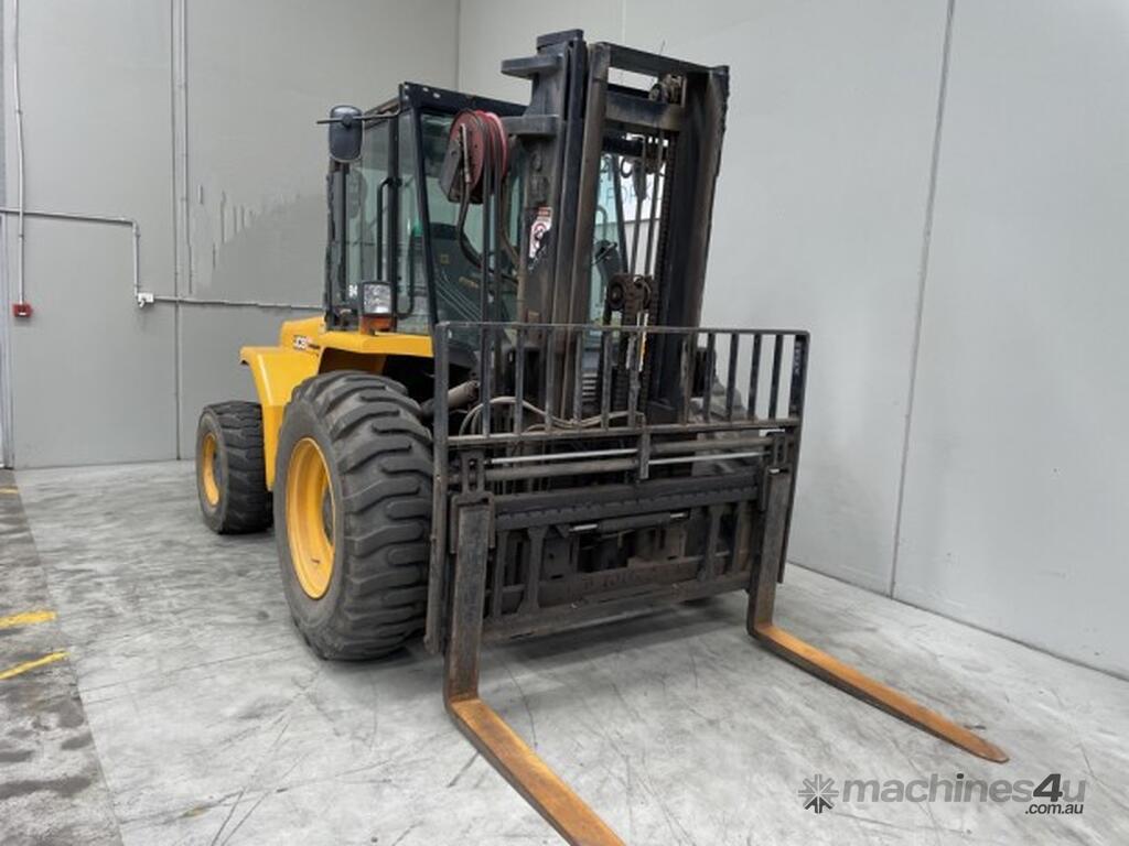 JCB 950 rough terrain forklift features hydraulic cylinders which are friction-welded eye-ends for extra strength, plus all pivots use hardened pins. Masts are made from heavy-duty channel and I-section steel, alongside heavy-duty chains and guide roller bearings that are sealed for life. The one-piece fully welded chassis on a JCB forklift maximizes strength and minimizes weight, while axles are the same heavy-duty units JCB fit to their backhoe loaders and telescopic handlers