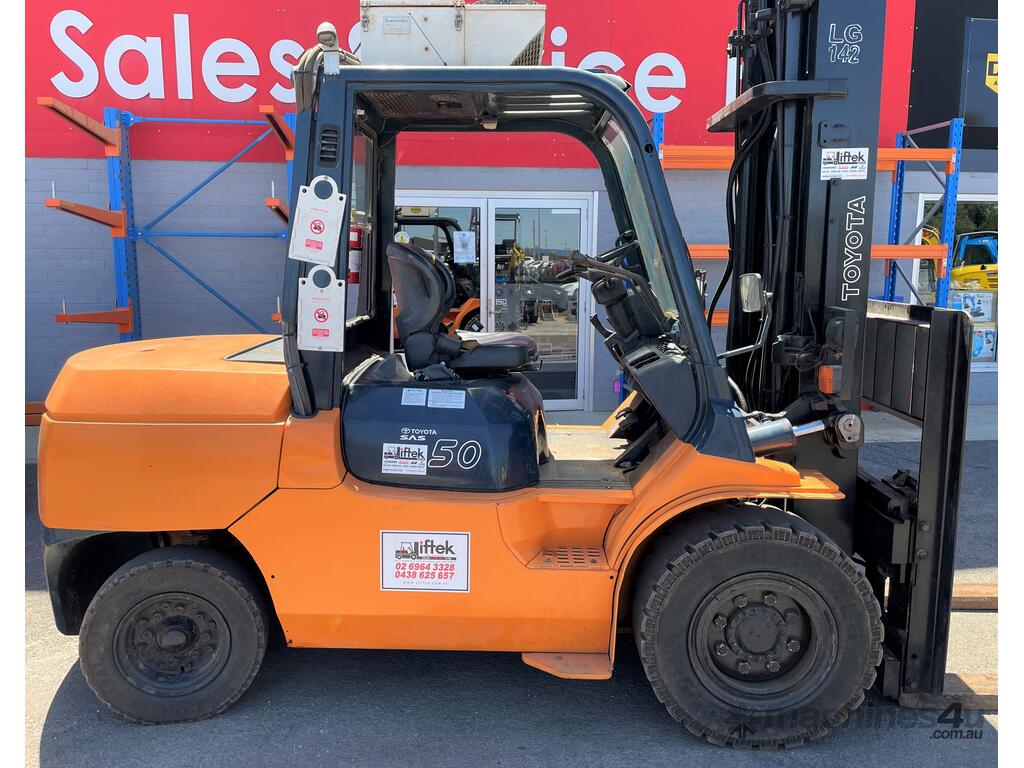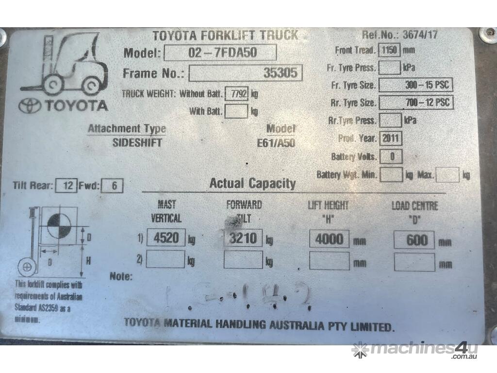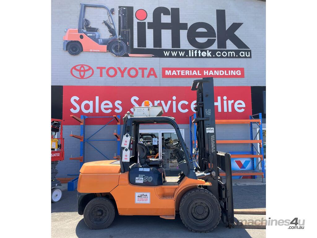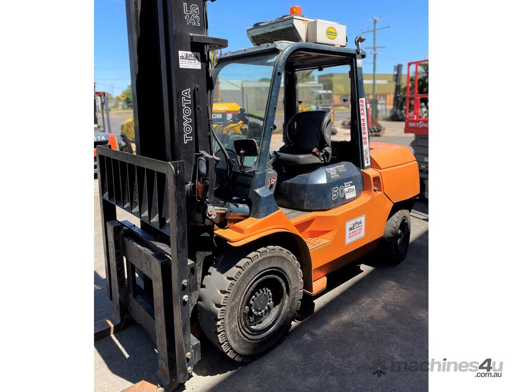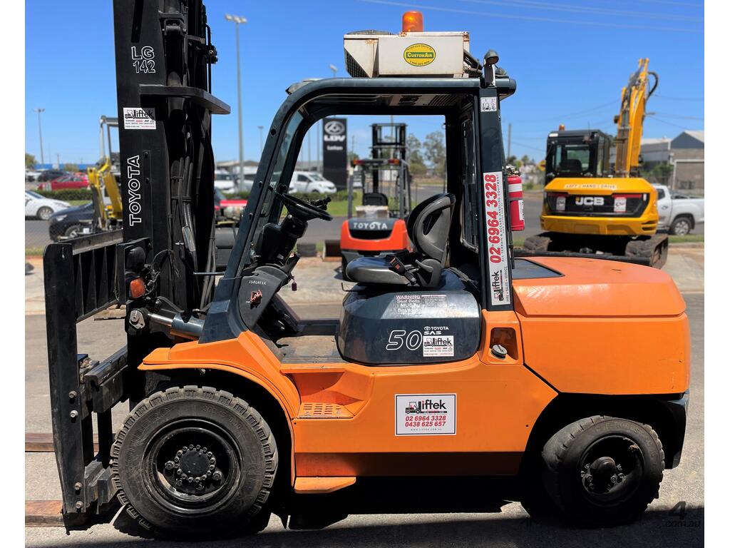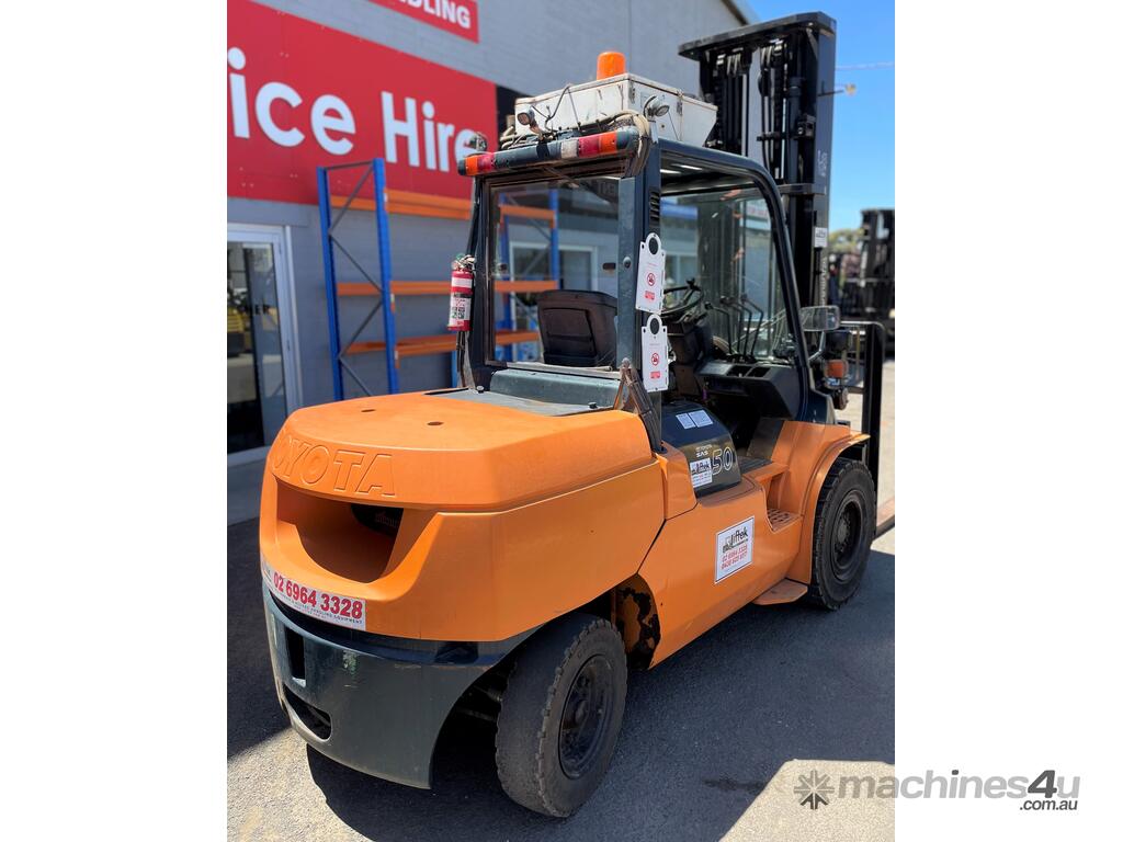Renowned for reliability and performance, this forklift demonstrates Toyota's commitment to efficiency and safety in material handling solutions, ensuring optimal productivity in diverse operational environments.