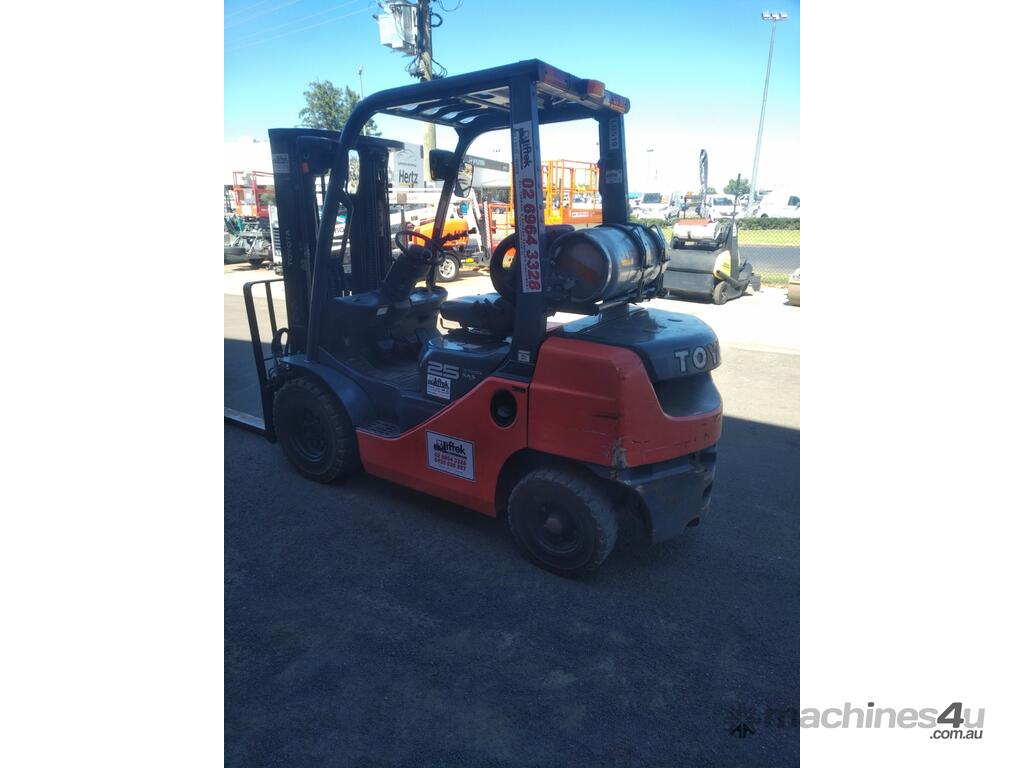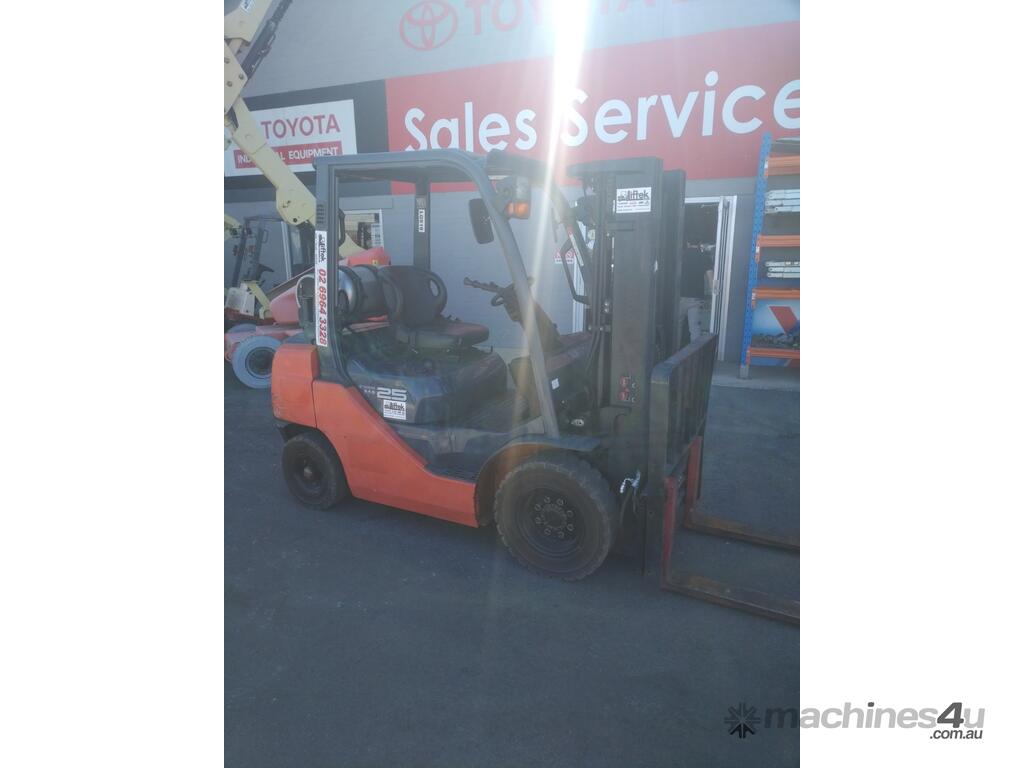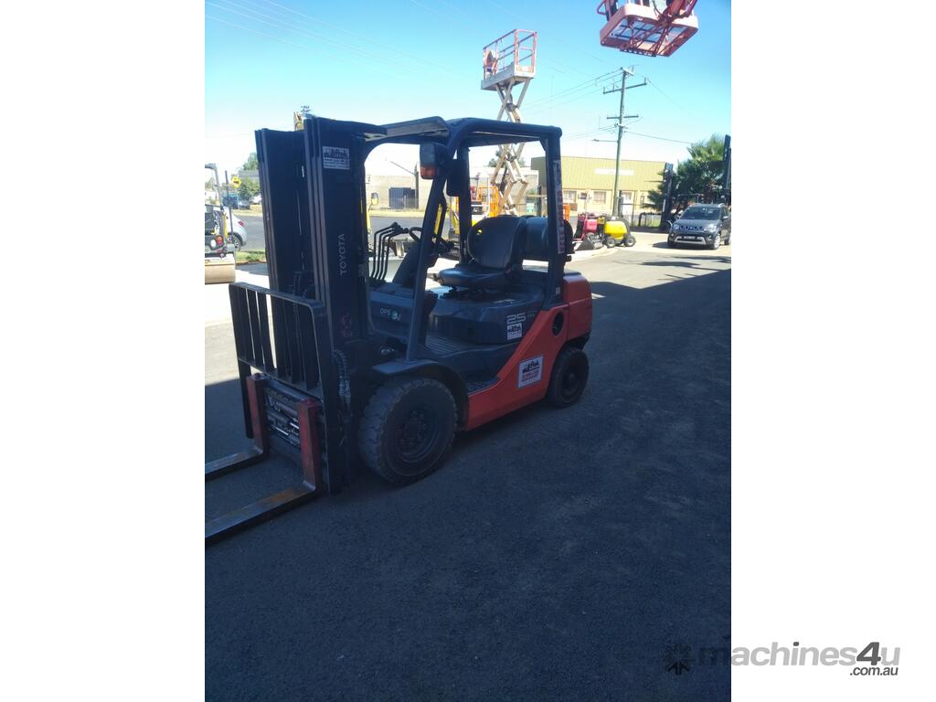 The Toyota 32-8FG25 is a versatile  2.5 ton forklift engineered for optimal performance and reliability. Designed with precision and powered by cutting-edge technology, this model ensures seamless operation, elevating efficiency and safety in diverse industrial settings.TOYOTA
