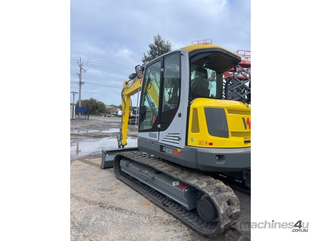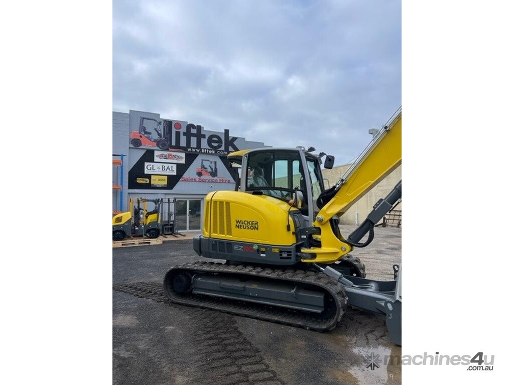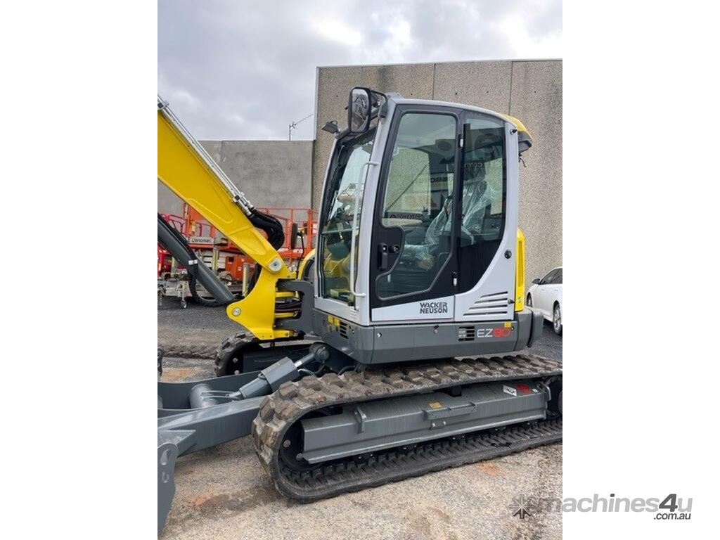 The EZ80 is the largest Wacker Neuson zero-tail tracked excavator. It combines compact dimensions and low consumption with high performance. With a digging depth of over 4 meters and excellent digging values, excavation work can be completed quickly. Working along walls and other boundaries is no problem because there is no machine rear overhang. Even on narrow urban construction sites, the EZ80 proves itself with its compact dimensions. Moreover, it is impressive due to up to 20% less fuel consumption and thus significantly reduced operating costs.