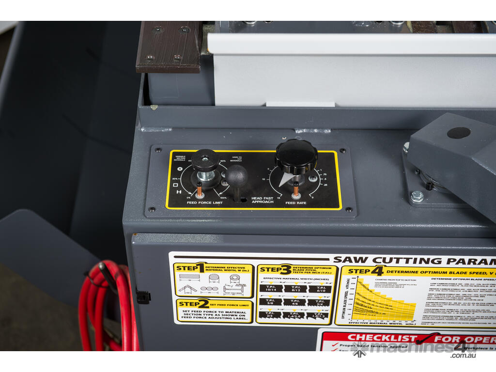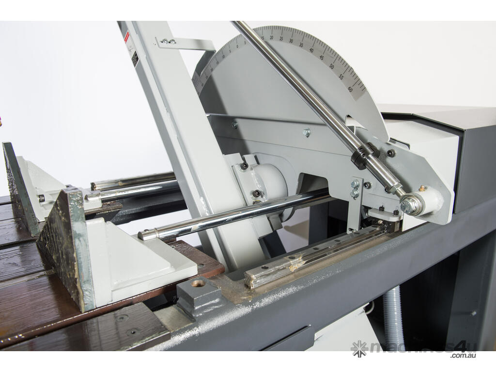 With a capacity of 527 x 457mm, its saw head can cut at 90° and be adjusted to cut at a 3° canted head plus program to mitre 60 degrees left and right.