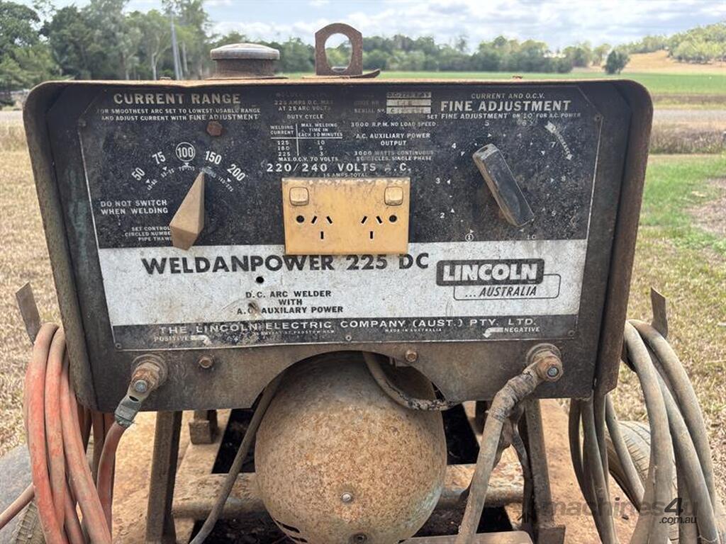 LINCOLN 225 AMP WELDER GENERATOR, S/N: C125221, E/N: 1273757. LOCATION: PROSERPINE, QLD 4800. INSPECTIONS & COLLECTIONS: BY APPOINTMENT ONLY. ENQUIRIES: JOHN MCDOUGALL ON OR JOHNEMERALDAUCTIONCENTRE