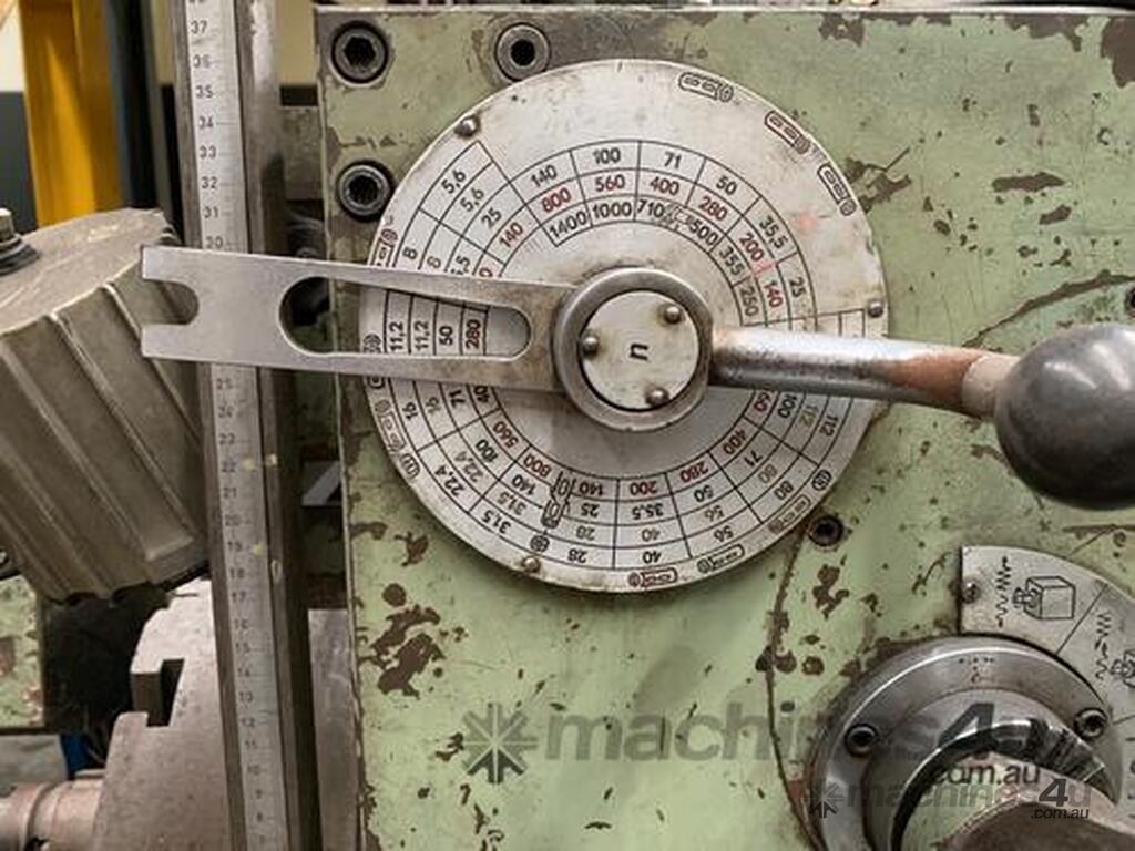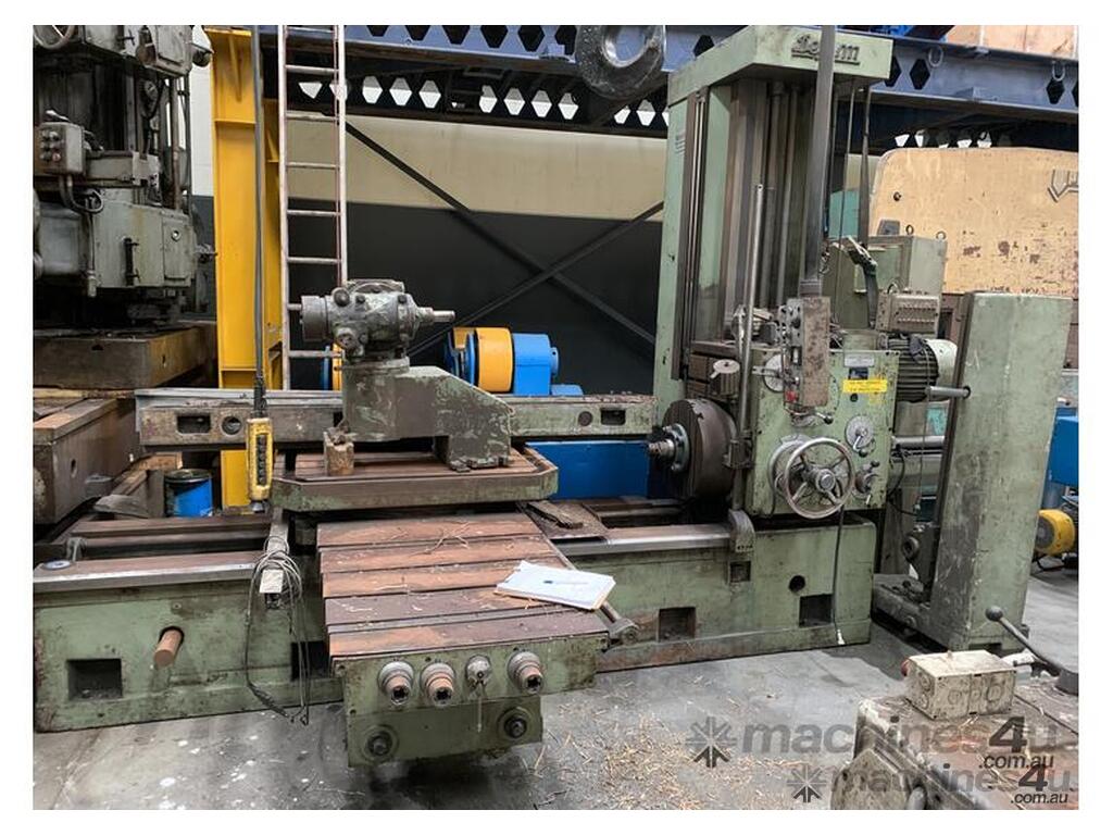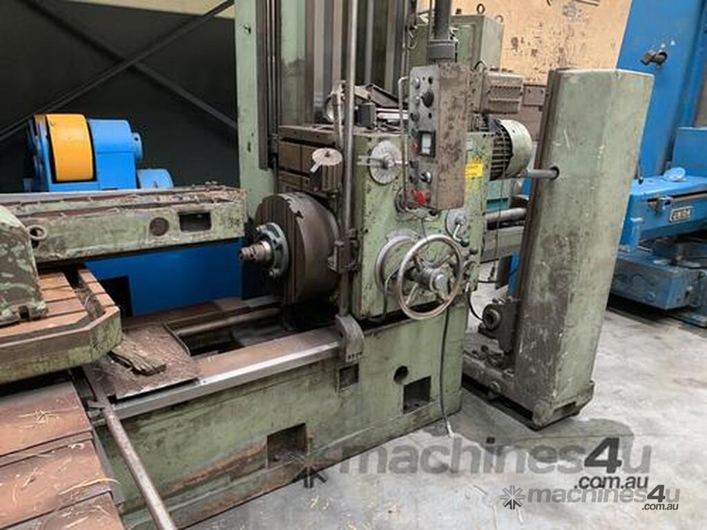 80mm, facing head 500 dia, table size 1000 x 1100 with vertical head, outer table supports and end stay. Electrical box needs work done.