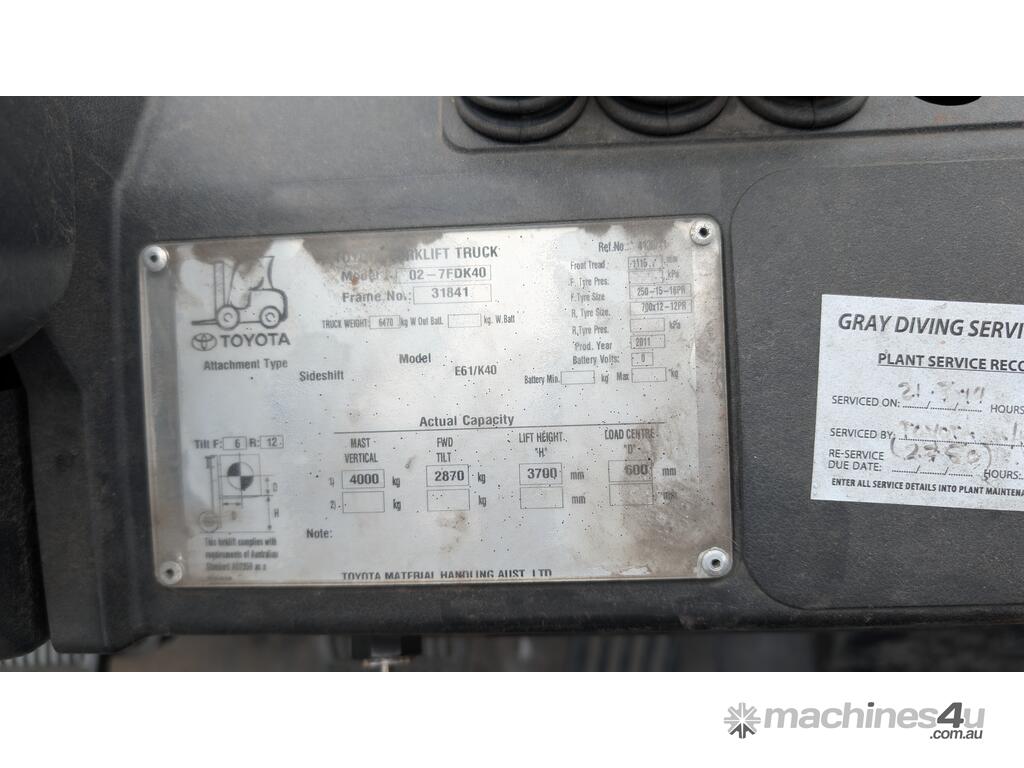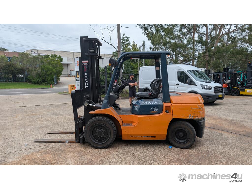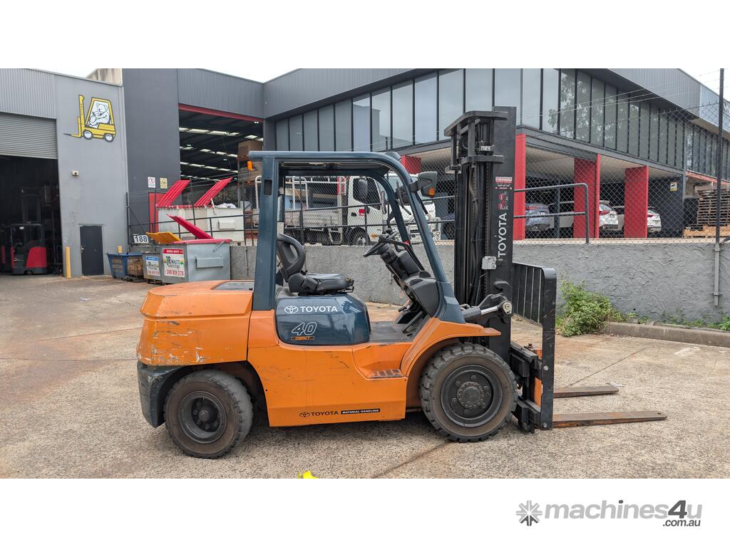 Heavy-duty Toyota diesel forklift built for demanding industrial and yard applications. This 7FDK40 delivers reliable 4-ton lifting capacity, strong torque, and proven Toyota durability.