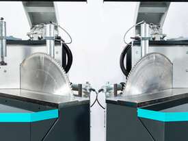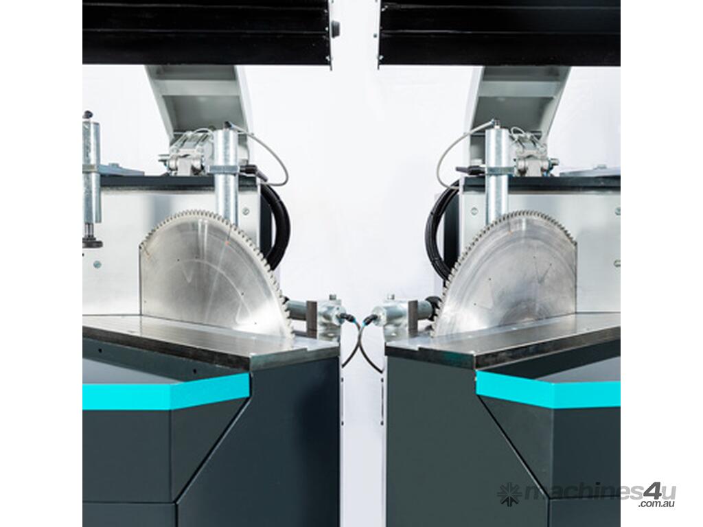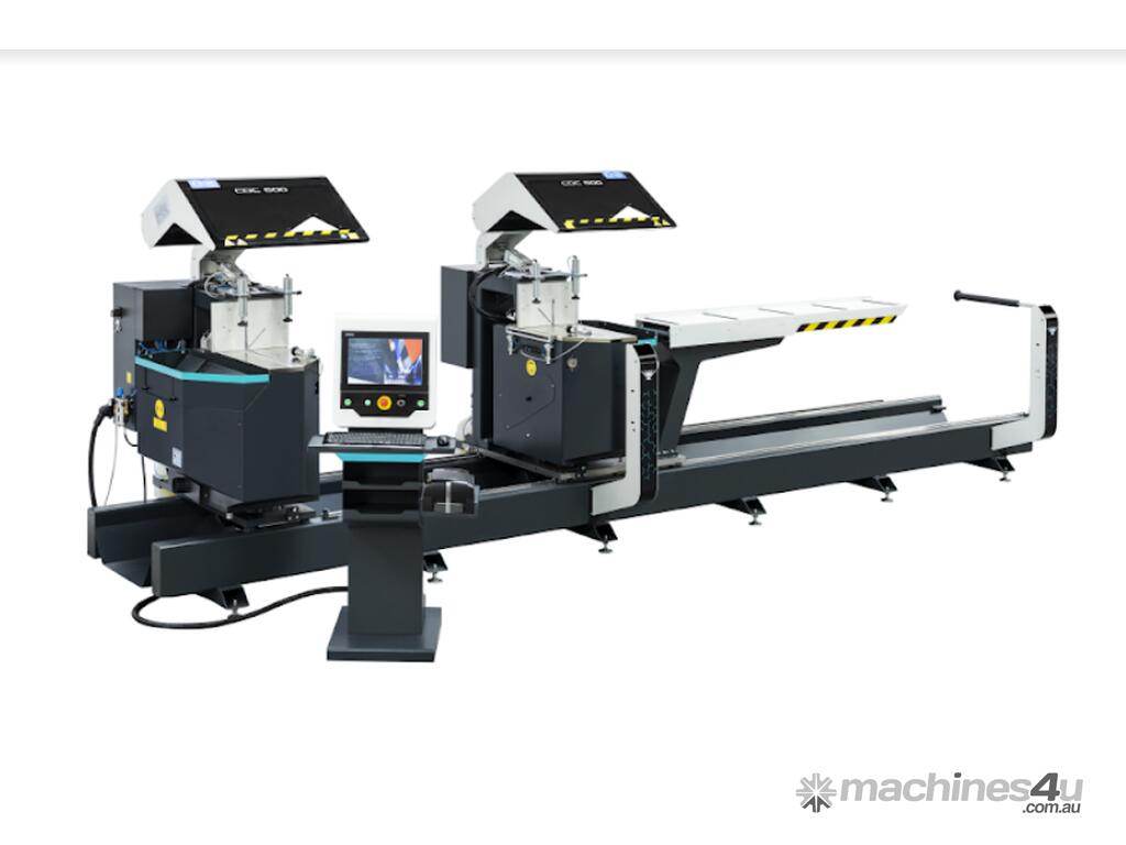 is a fully automatic, CNC double-head saw designed for high-capacity cutting of large PVC and aluminum profiles. It is specifically engineered to perform complex compound cuts by combining pivoting and tilting movements.