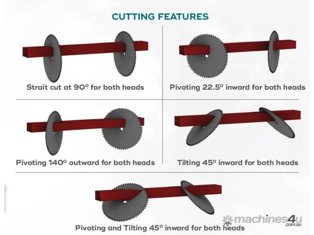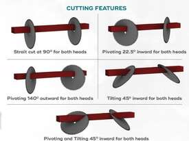 • Compound Cuts: Capable of simultaneous 45° x 45° pivoting and tilting on both heads.