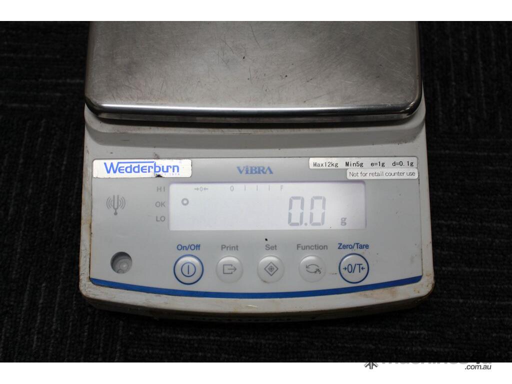 Laboratory Balance, "Wedderburn" model Vibra AB12001CE, max. capacity 12kg x0.1g, stainless steel platform size 190mm x 190mm