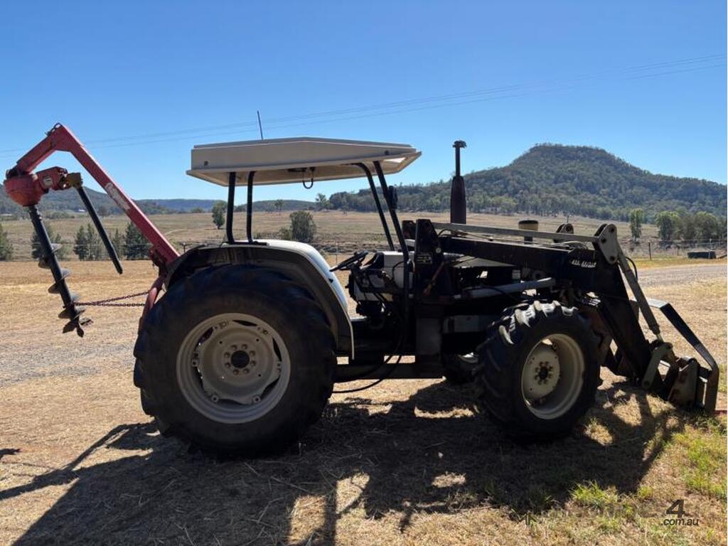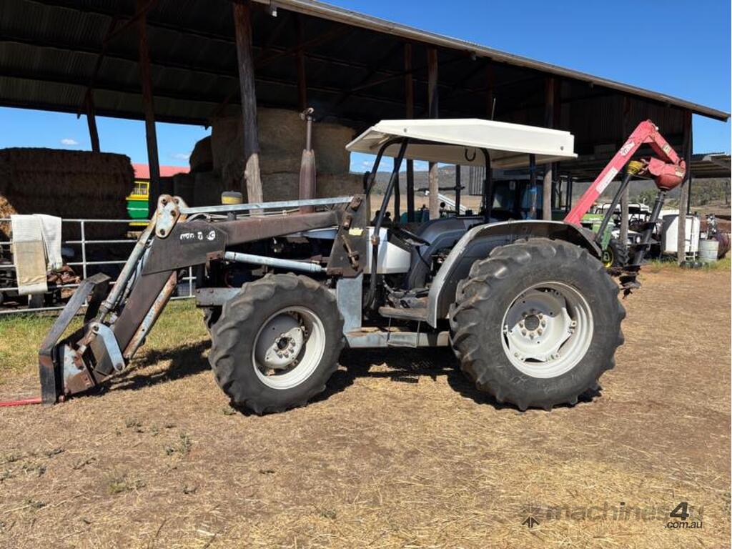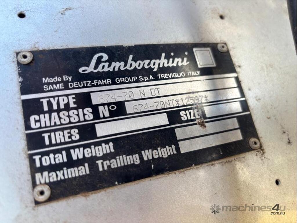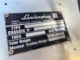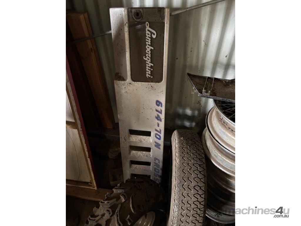 Lamborghini 674-10N Cross 70 hp tractor. Attachments include 4 in 1 bucket, hay spikes and forks. Odometer reading is unknown.