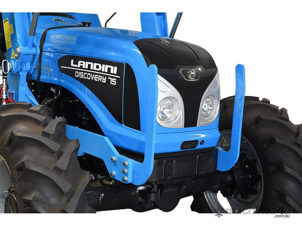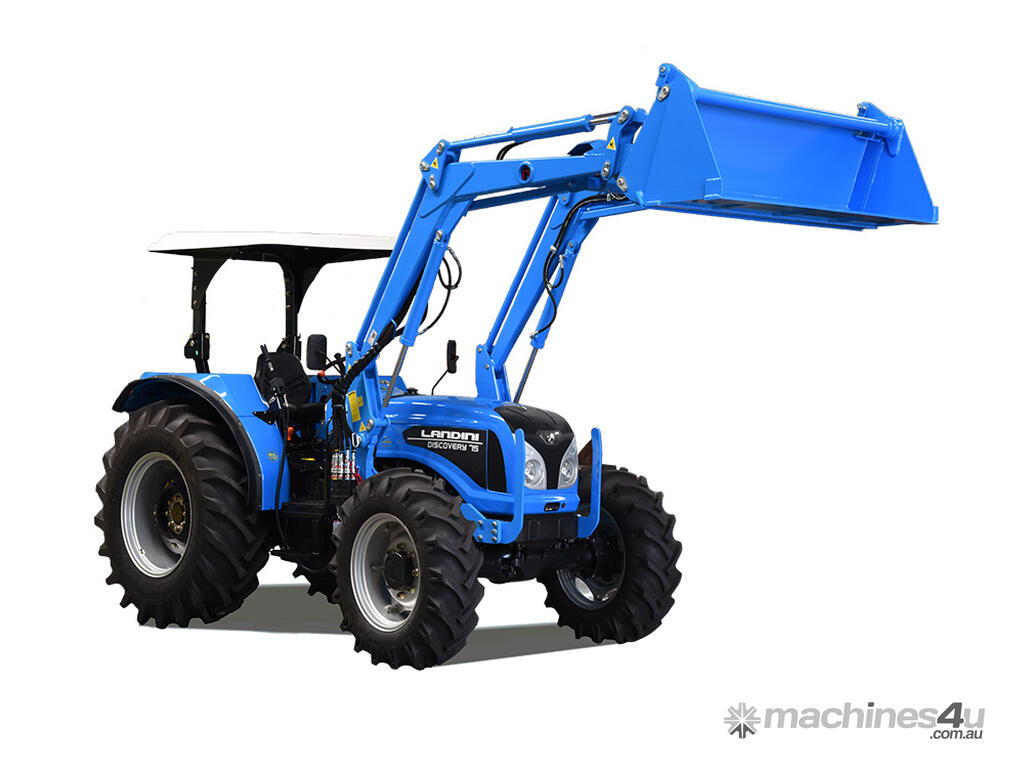 The Landini Discovery 75 is the medium power tractor with 75 HP 4-cylinder diesel engine. The Discovery has great in-field performance, strength, reliability and versatility. Applications include soil preparation, mowing, baling, loading and transport.