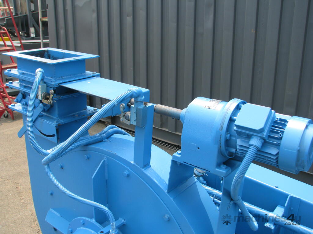 The inlet has a butterfly valve and the outlet has a motorised open-close lid/valve as well as adjustable open-close flaps.