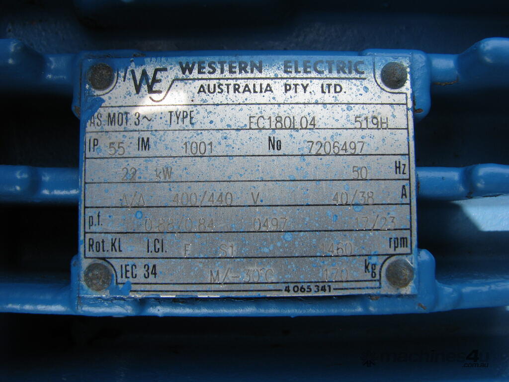 It belt driven and powered by a 22kW 3 Phase motor.